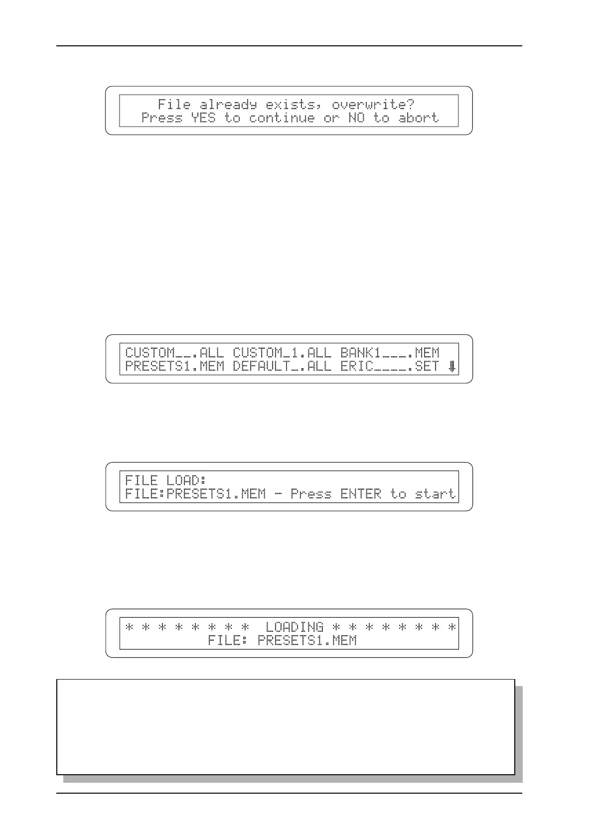sul campo LOAD e premere [ENTER/YES]: il display visualizzerà i primi 6 file, dedicati alle