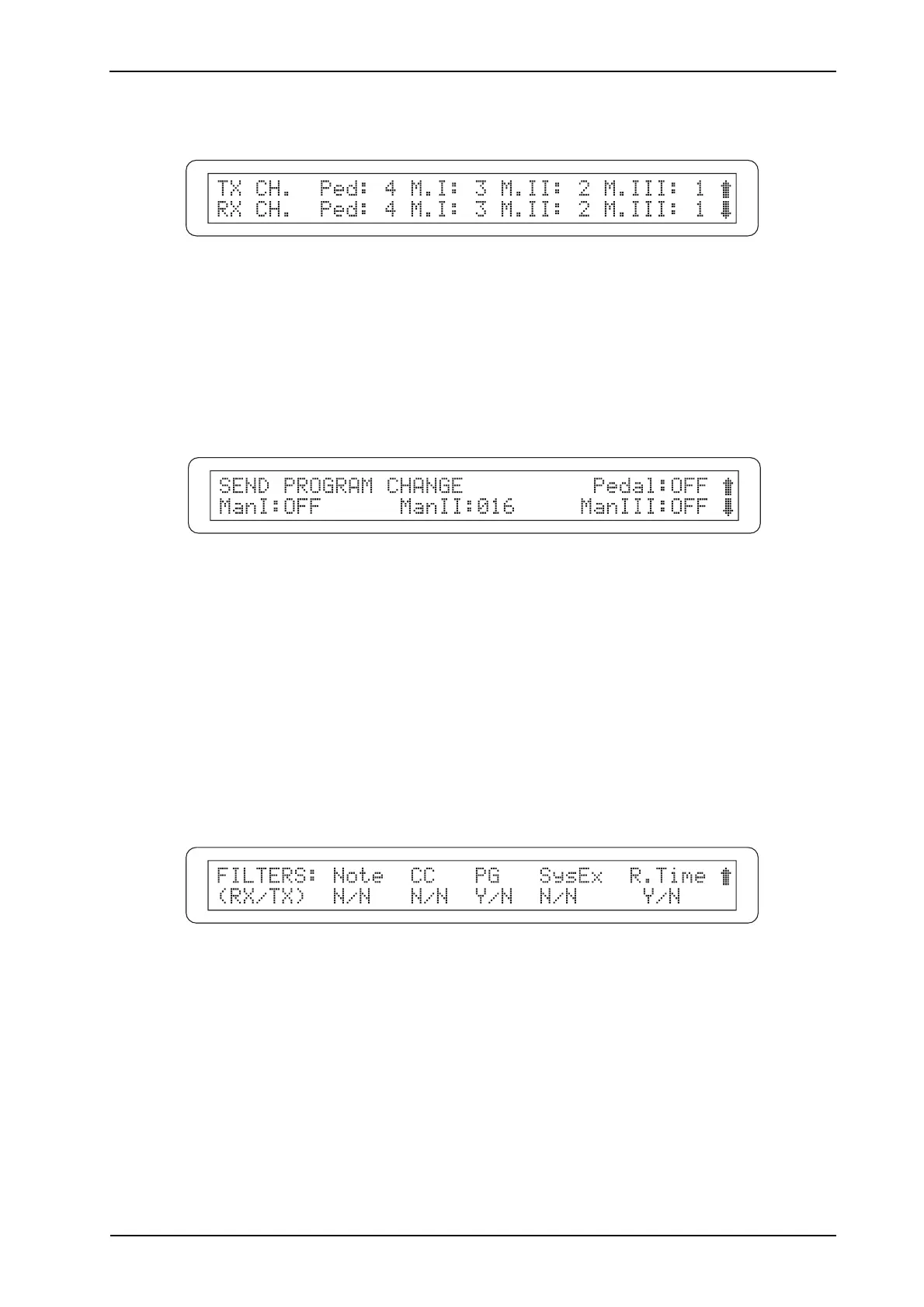 Premere infine il pulsante [CURSOR (PG) DOWN] per la videata di regolazione dei filtri MIDI.
