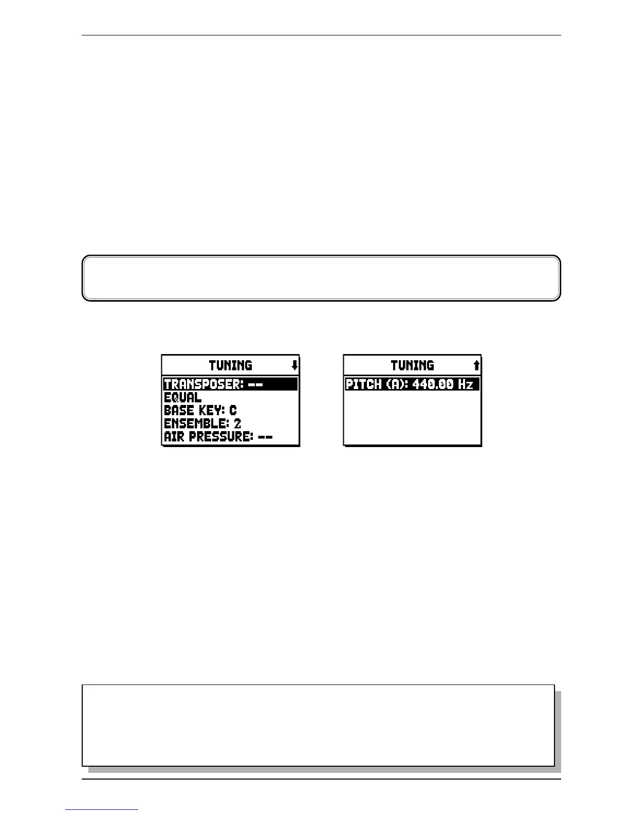 o [second field on the display]: (Equal in the screen shown) selector for setting historical temperaments