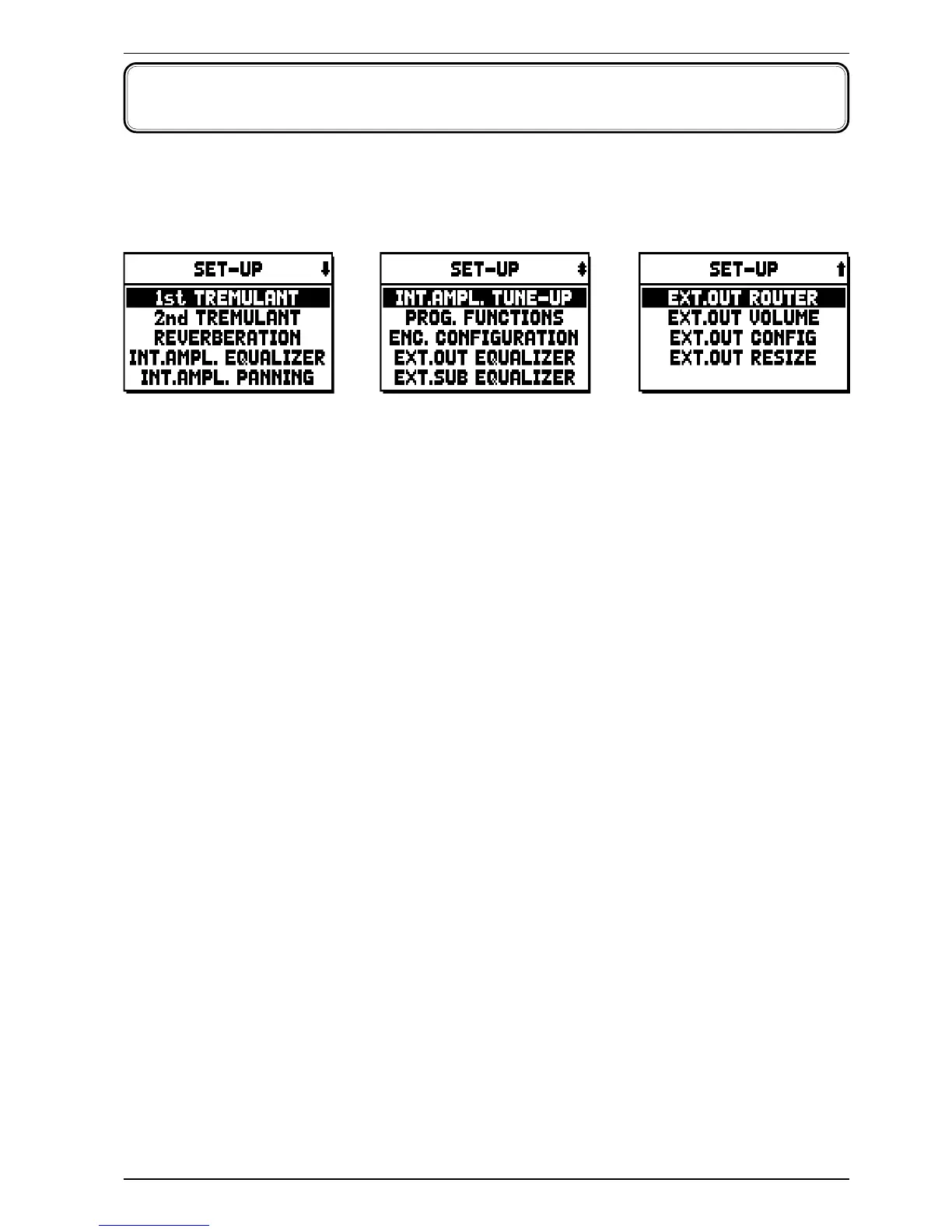 o 2nd TREMULANT: adjust the speed and depth of the second tremulant for each manual (see chap.9.1).