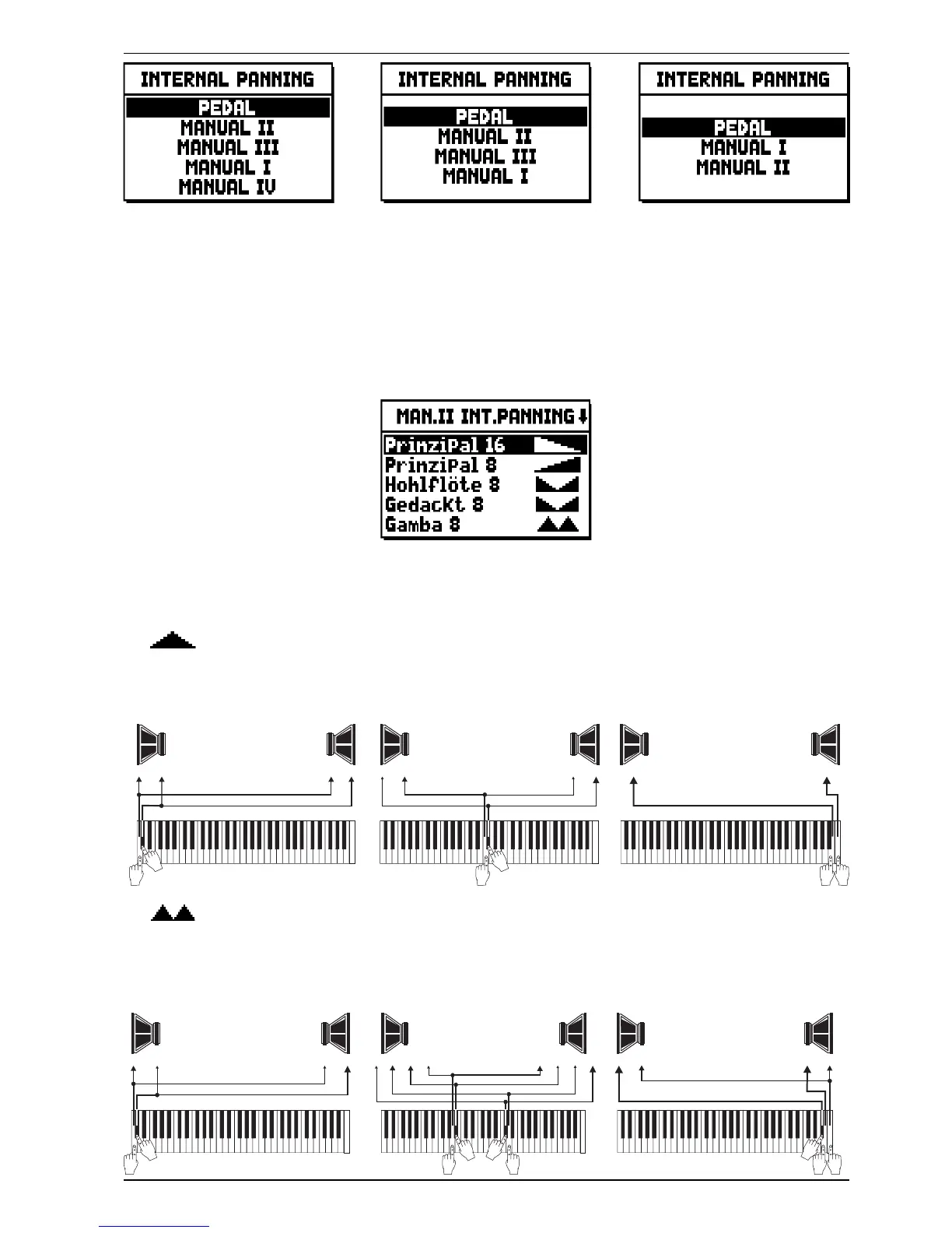 First select the organ section containing the voice you wish to set the panning for. In addition, you can access