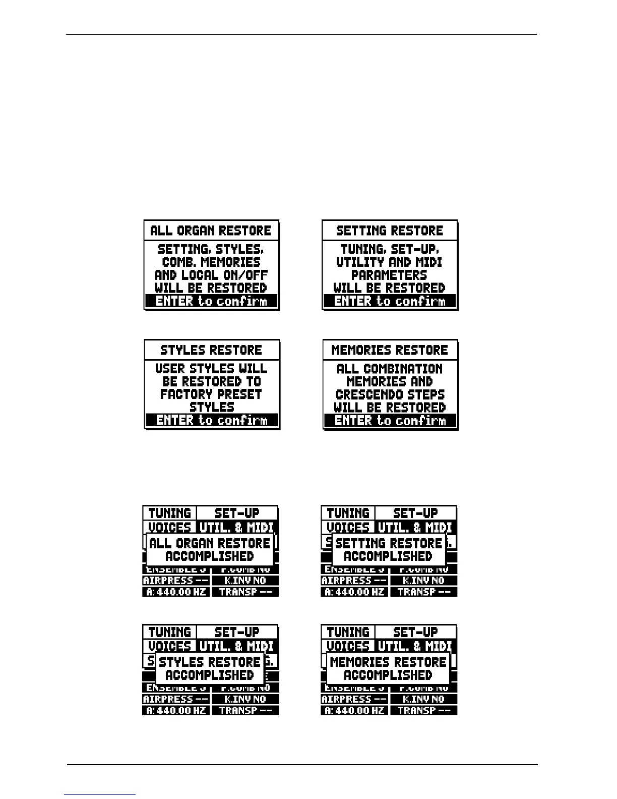 o ENTIRE ORGAN: all the settings and functions from the TUNING, VOICES (the four User styles),