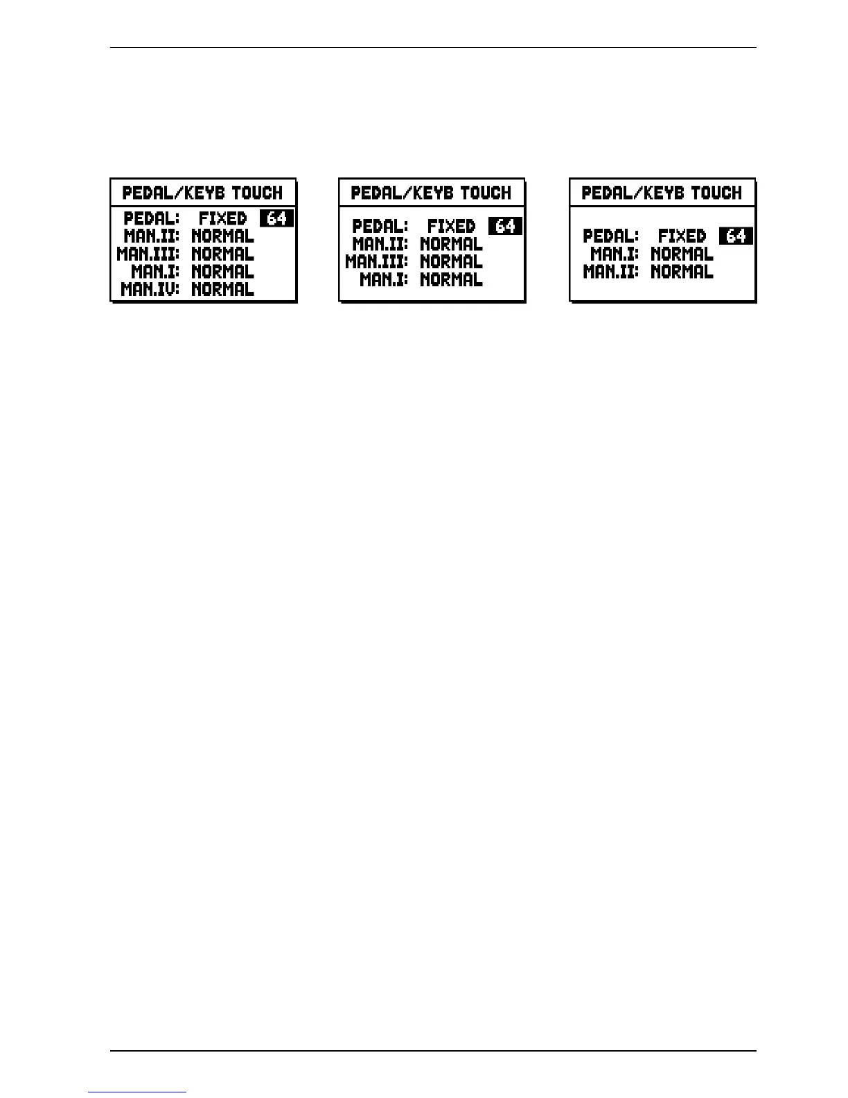 REGULATING THE MIDI VELOCITY (PEDAL/KEYB. TOUCH function)