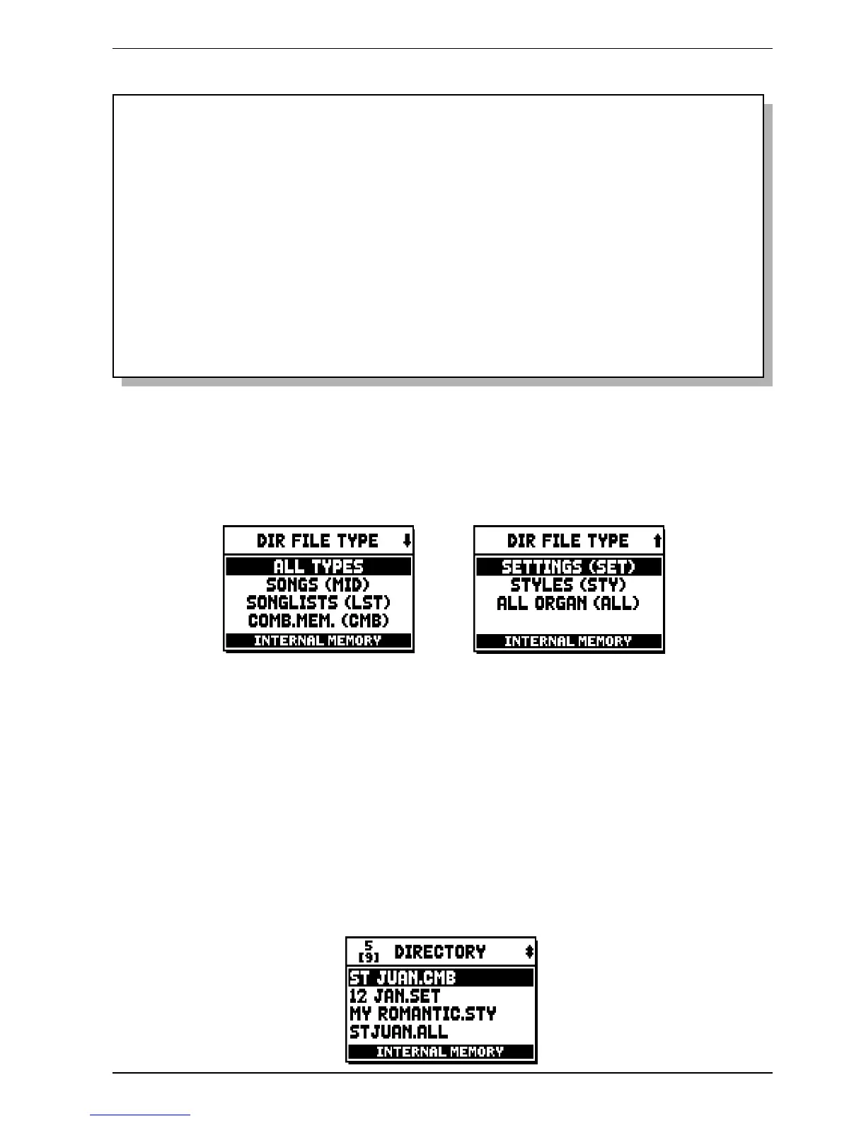 In order to visualize what files are in your memory, select the DIR field under the FILE MANAGEMENT