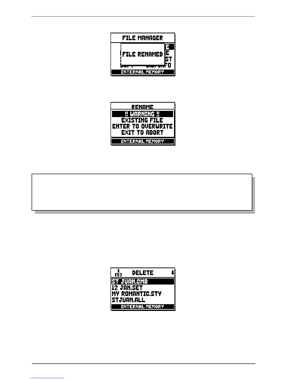 Press [ENTER] to overwrite the old file or [EXIT] to quit and return to the file rename screen.