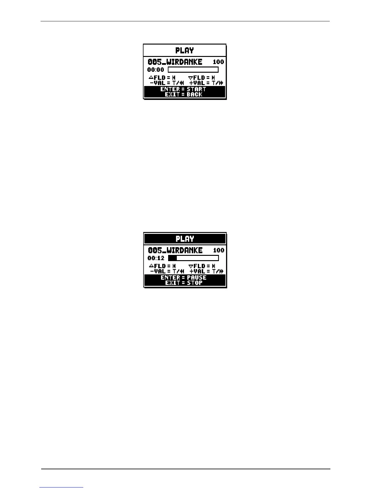 Once the playback of a song has been started, the display changes to: