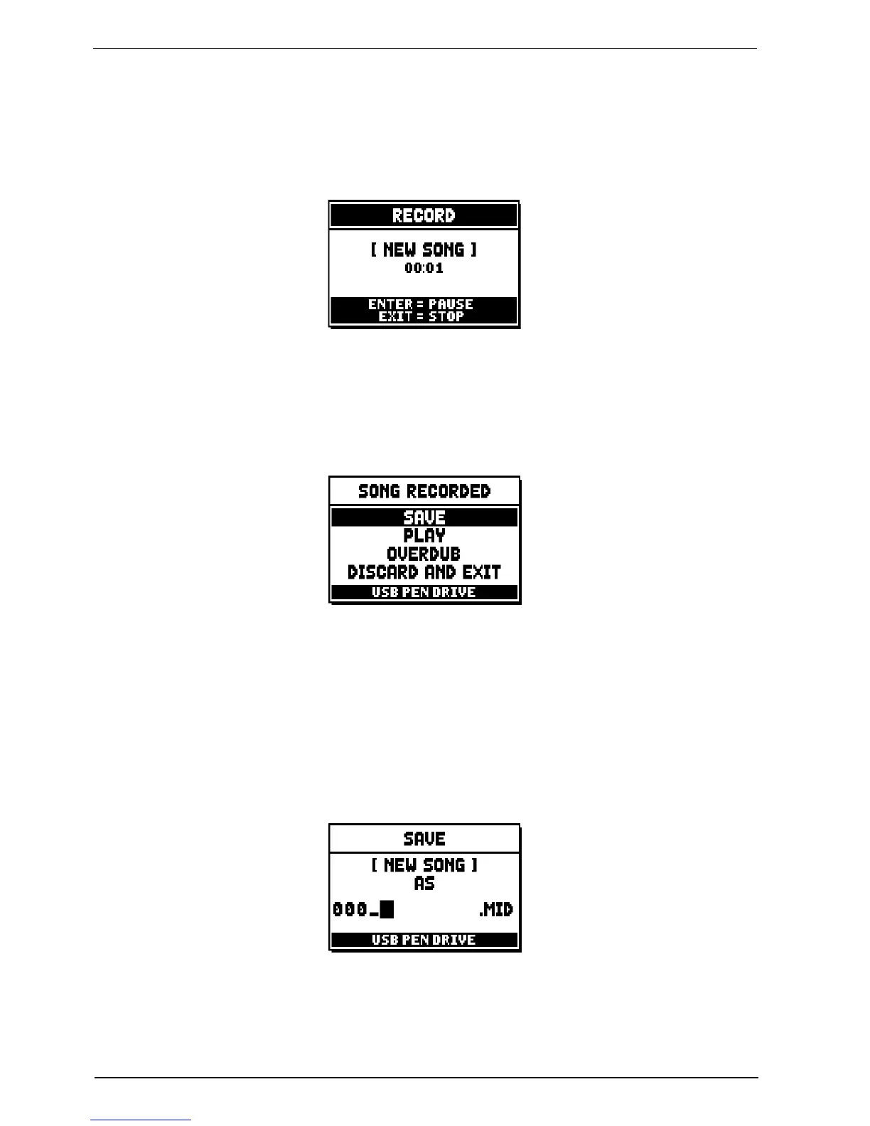 o SAVE: saving of the recording as a MIDI file.