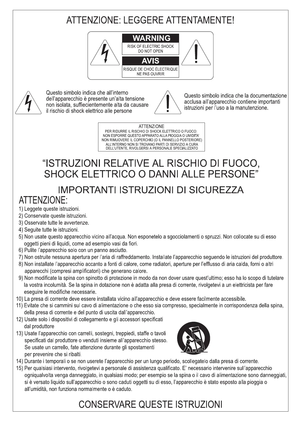 Viscount Prestige 80 - Italian Safety Instructions; User Safety Precautions