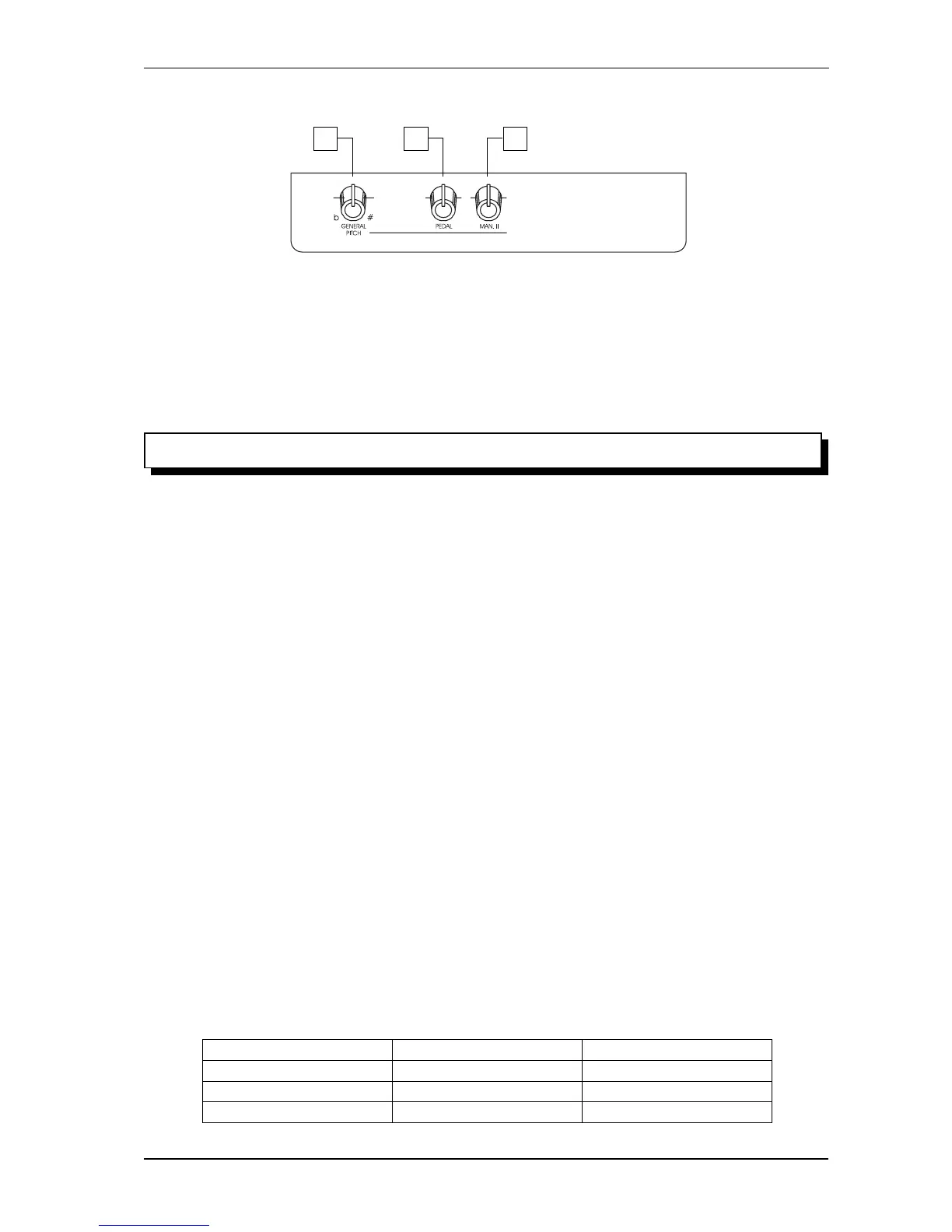 4. General Pitch: Mit diesem Regler wird die Gesamtstimmung der Orgel veraendert. Bei der Lieferung ist die Orgel