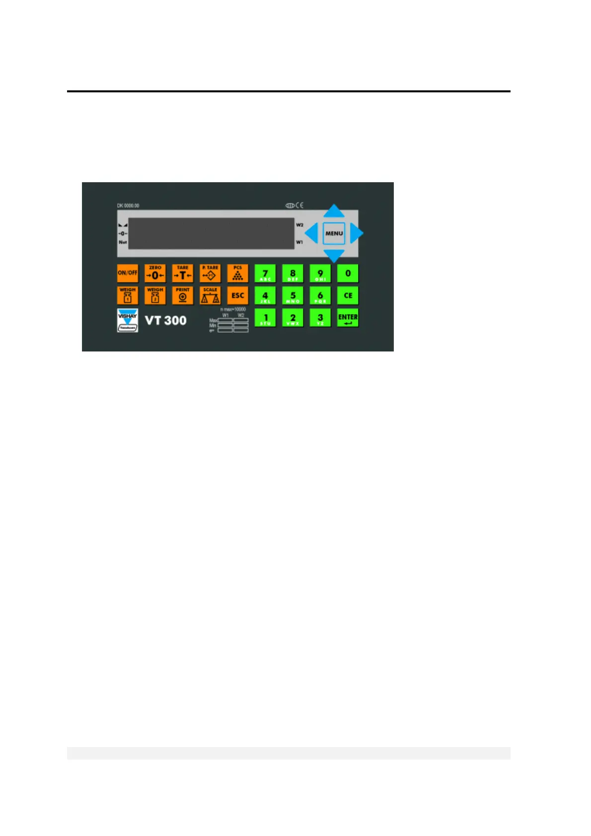 A sixteen-character dot matrix display shows weight information, status