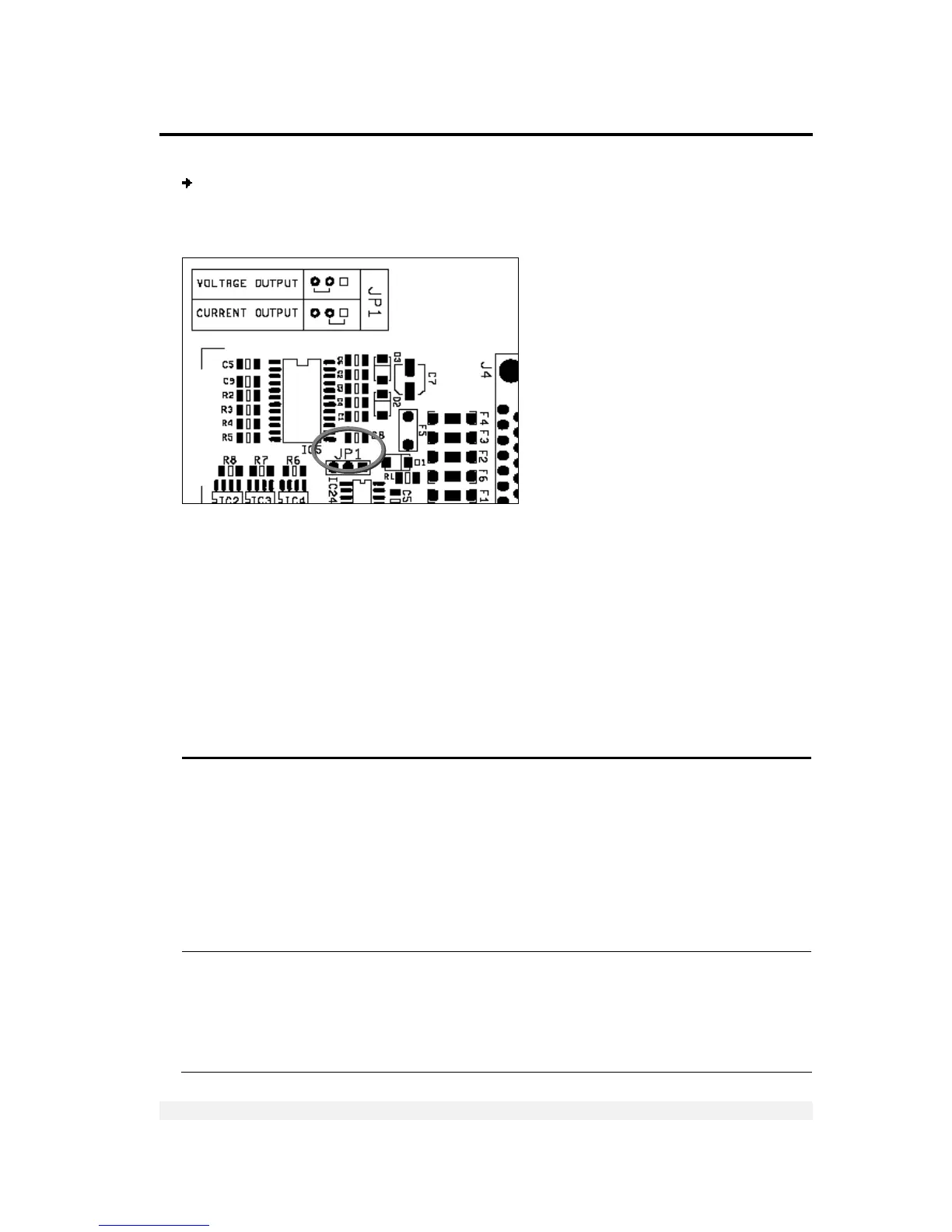 Set jumper JP1 to the appropriate position, to define voltage output or current