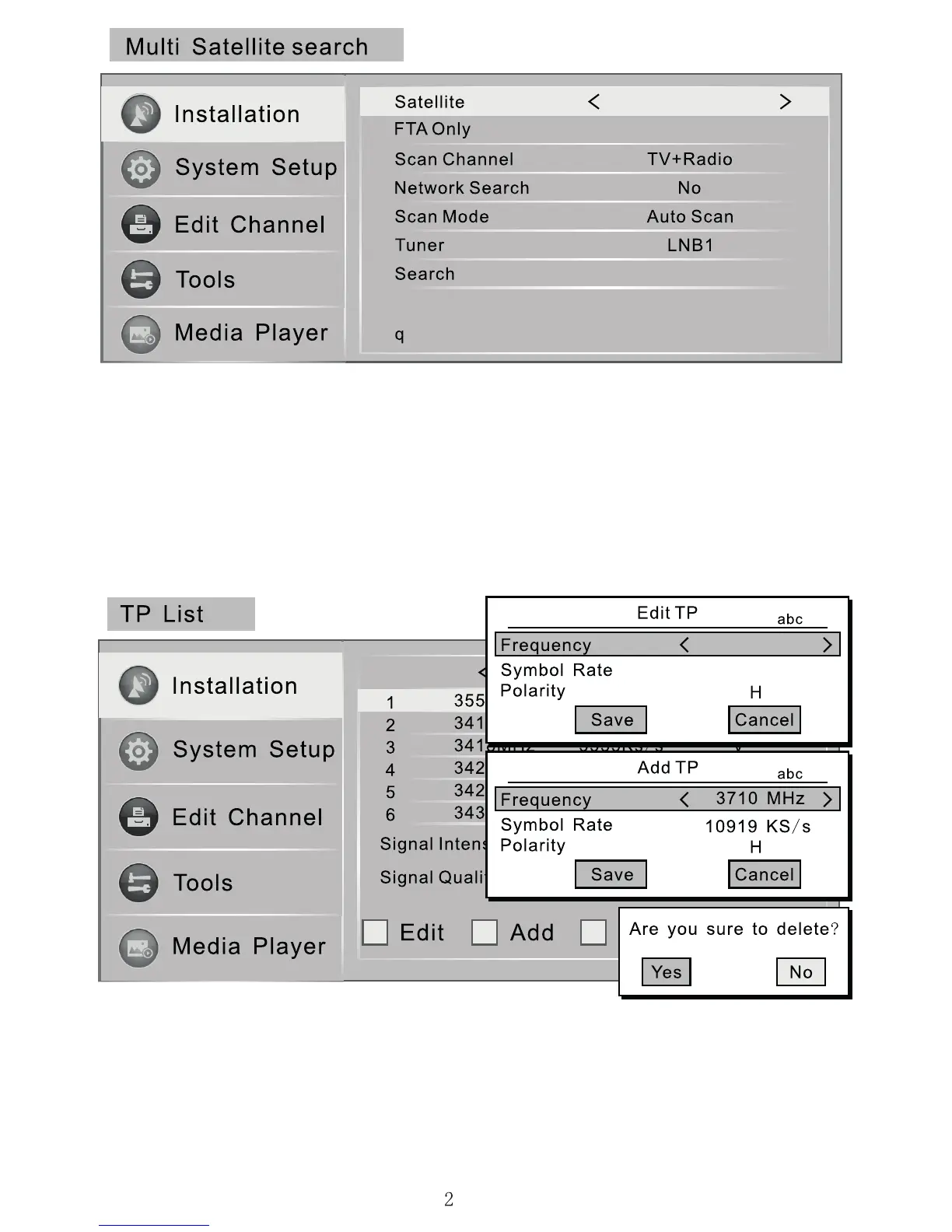 satellite. You can enter the TP List menu to search by transponder. Select the
