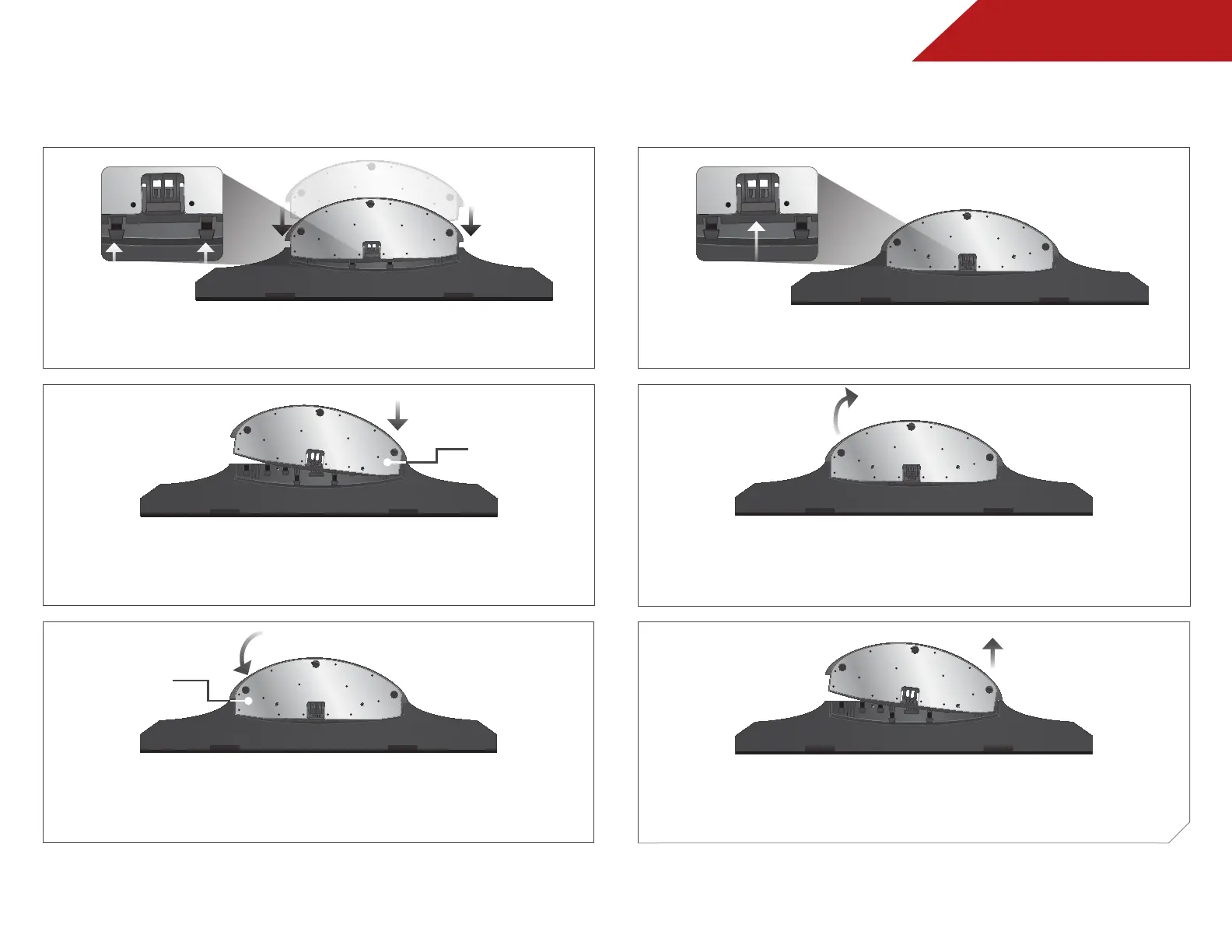 Align the 8 tabs on the base with the 8 slots on the bottom of the TV.