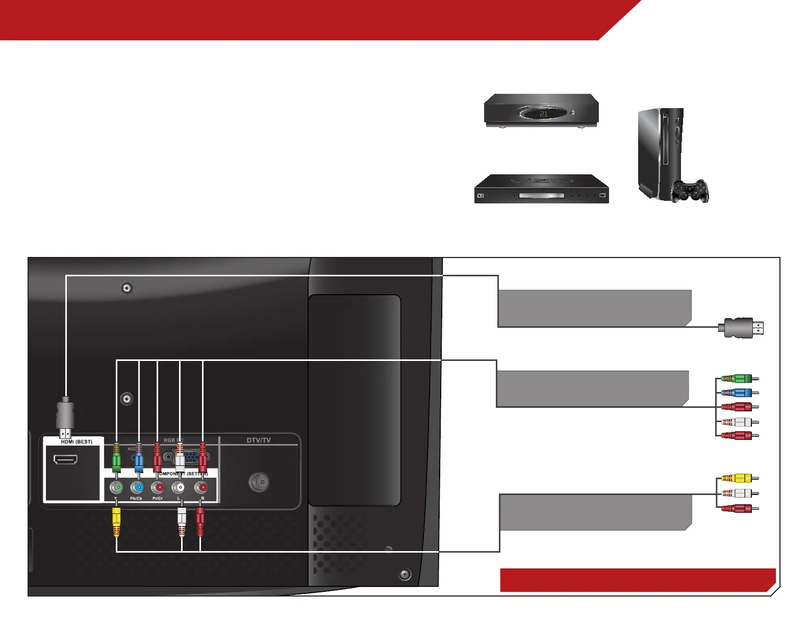 3. Connect the appropriate cable (not included) to the TV and
