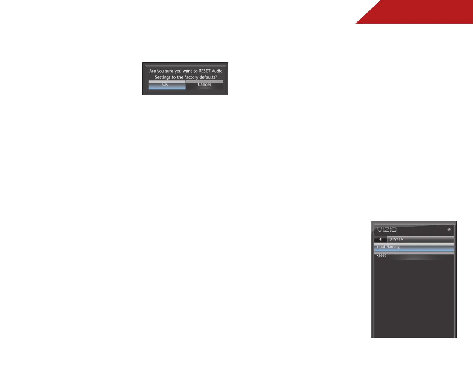 4. The TV displays “Are you sure you want to RESET Audio