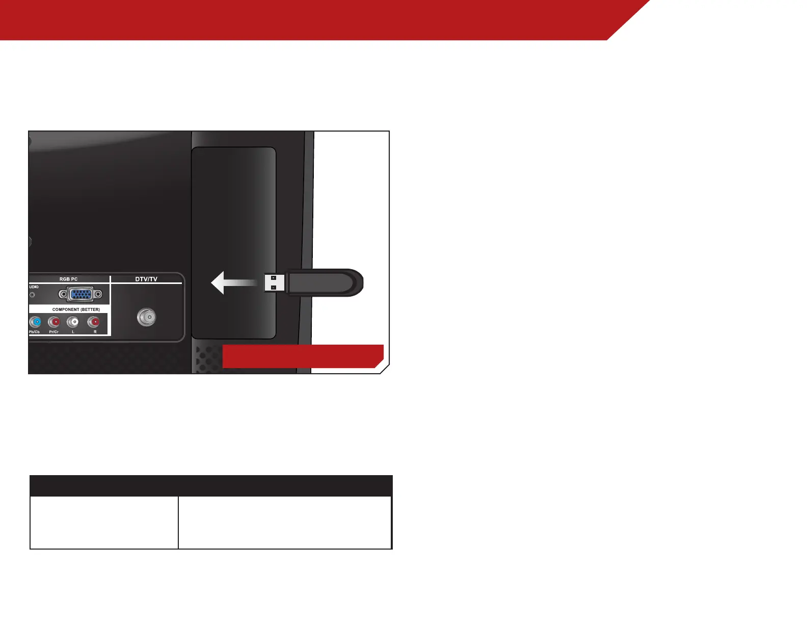 1. Turn the TV off. Connect your USB thumb drive to the USB port