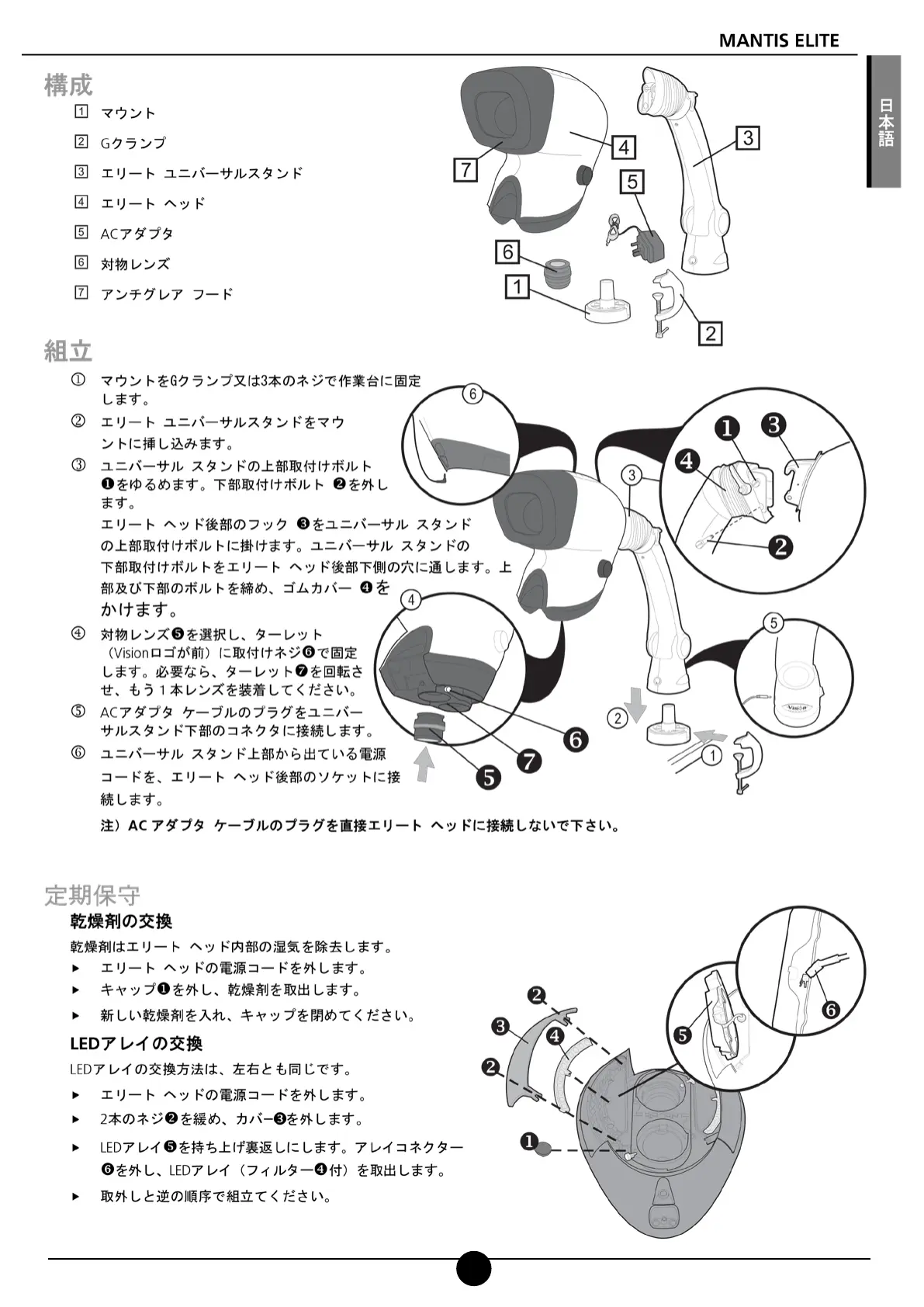 対物レンズ[を交換するときは、レンズ固定ネジ\を緩めて取
