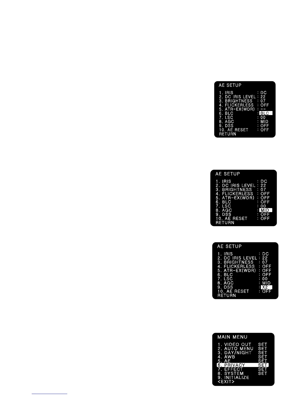 - When ATR-EX(WDR) is ON, DC IRIS LEVEL, BRIGHTNESS,