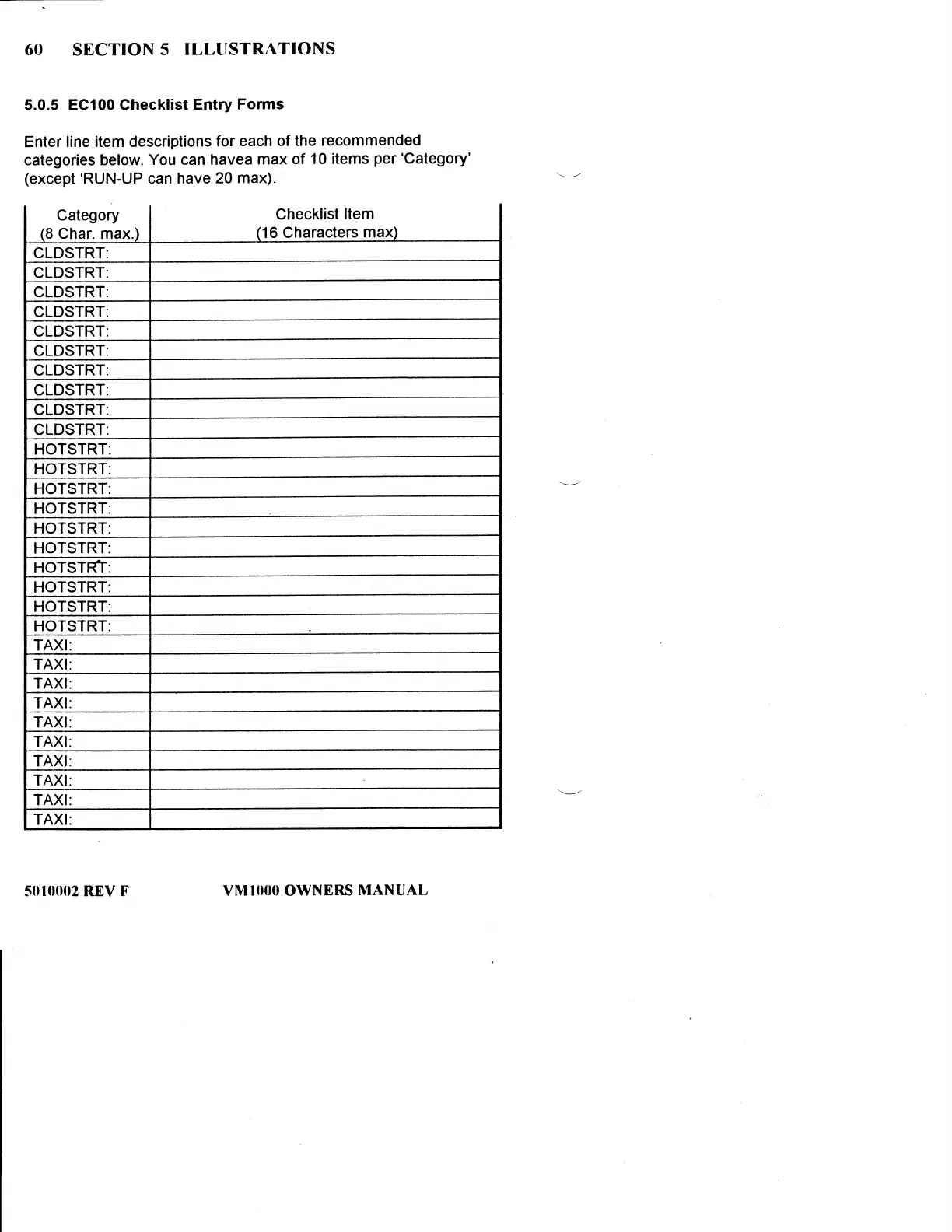 vision microsystems VM1000 - EC100 Checklist Entry Forms