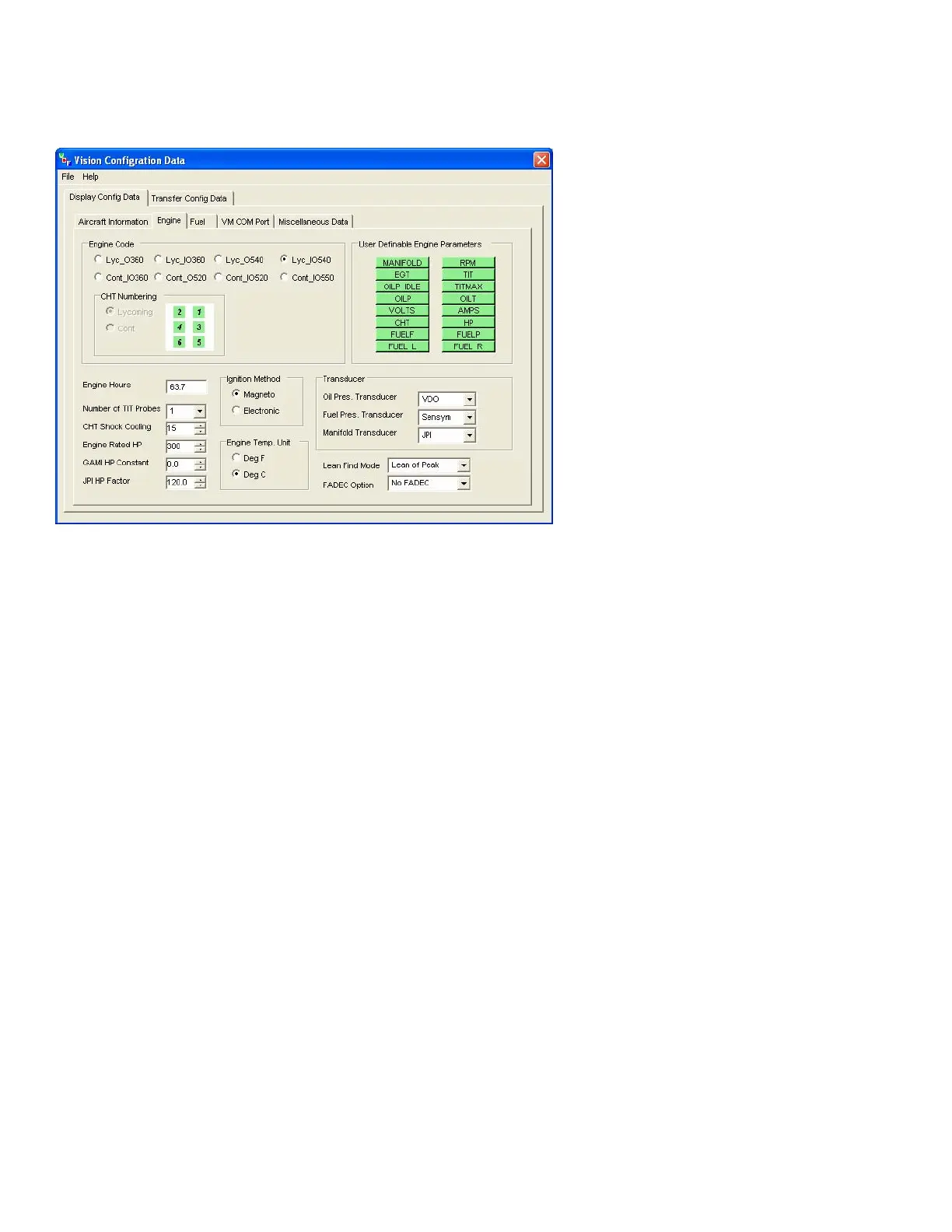 engine, such as maximum RPM, Oil Temp, minimum Oil