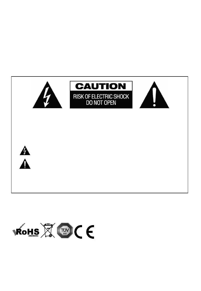 FORSIGTIG: RISIKO FOR ELEKTRISK STØD MÅ IKKE ÅBNES