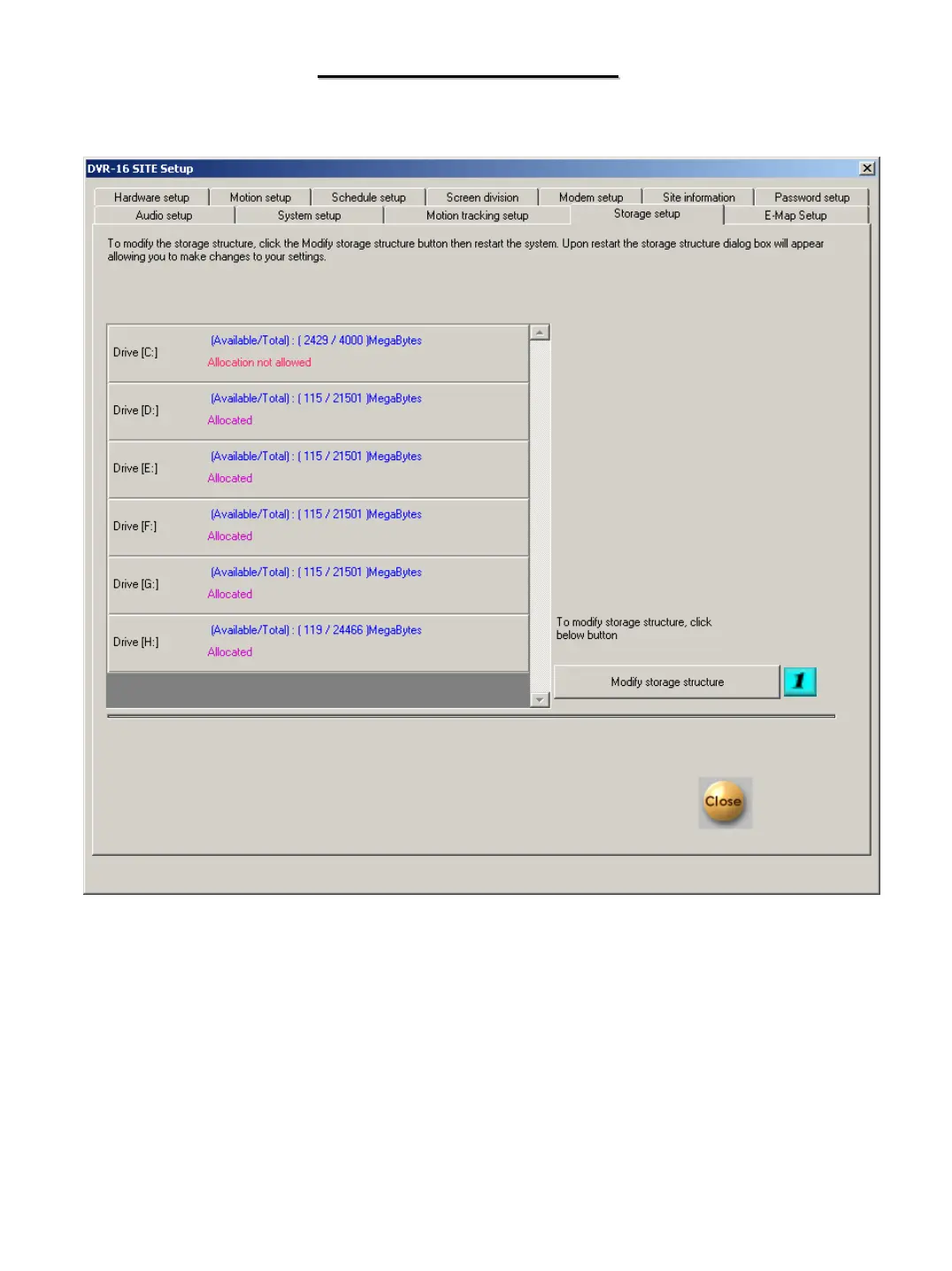 # 1 – Modify Storage Structure – Click on the box to make changes to the storage structure of your DVR.