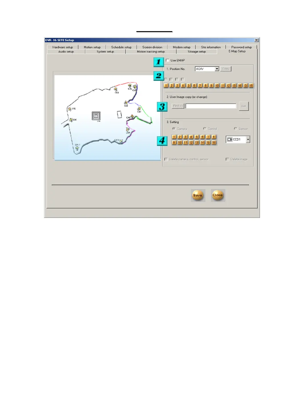 # 2 – Position No. – Select the screen division that you wish to add an E-Map to, then select the