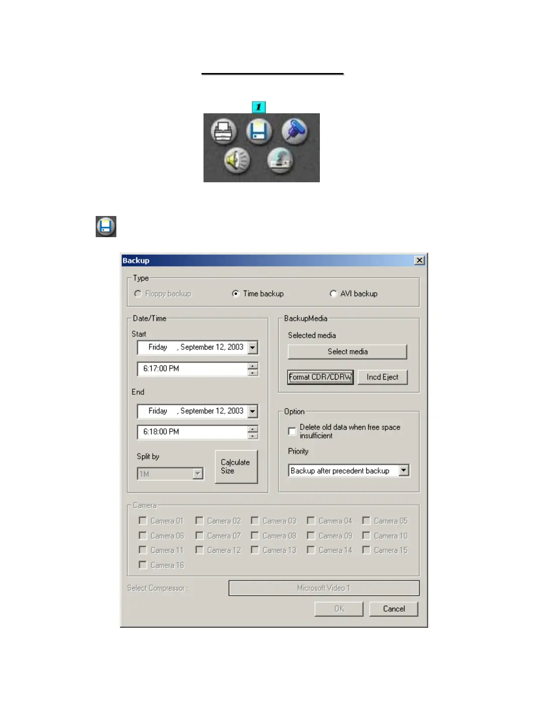 # 1 – Clicking on this button will bring up the Data Backup section below.