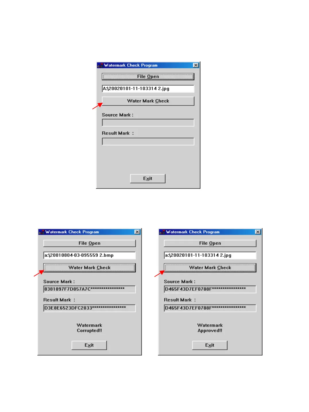 Once opened the name of the file will appear in the window. Select Watermark check to verify the image.