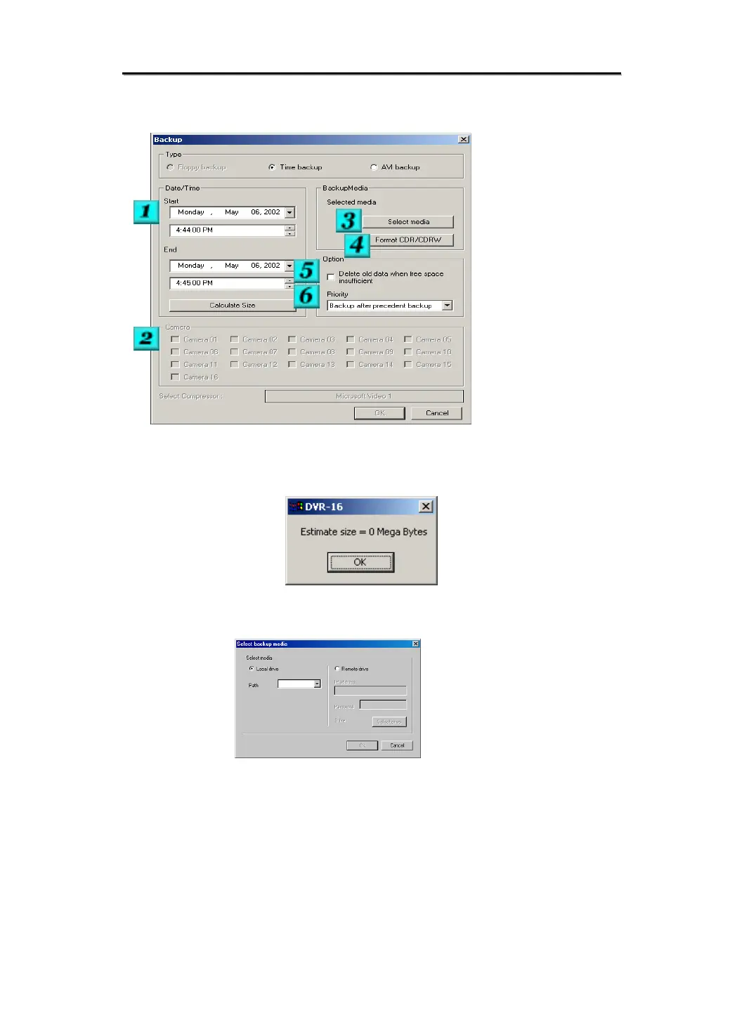 # 1 – Select the start and end time and date for the backup you wish to make.