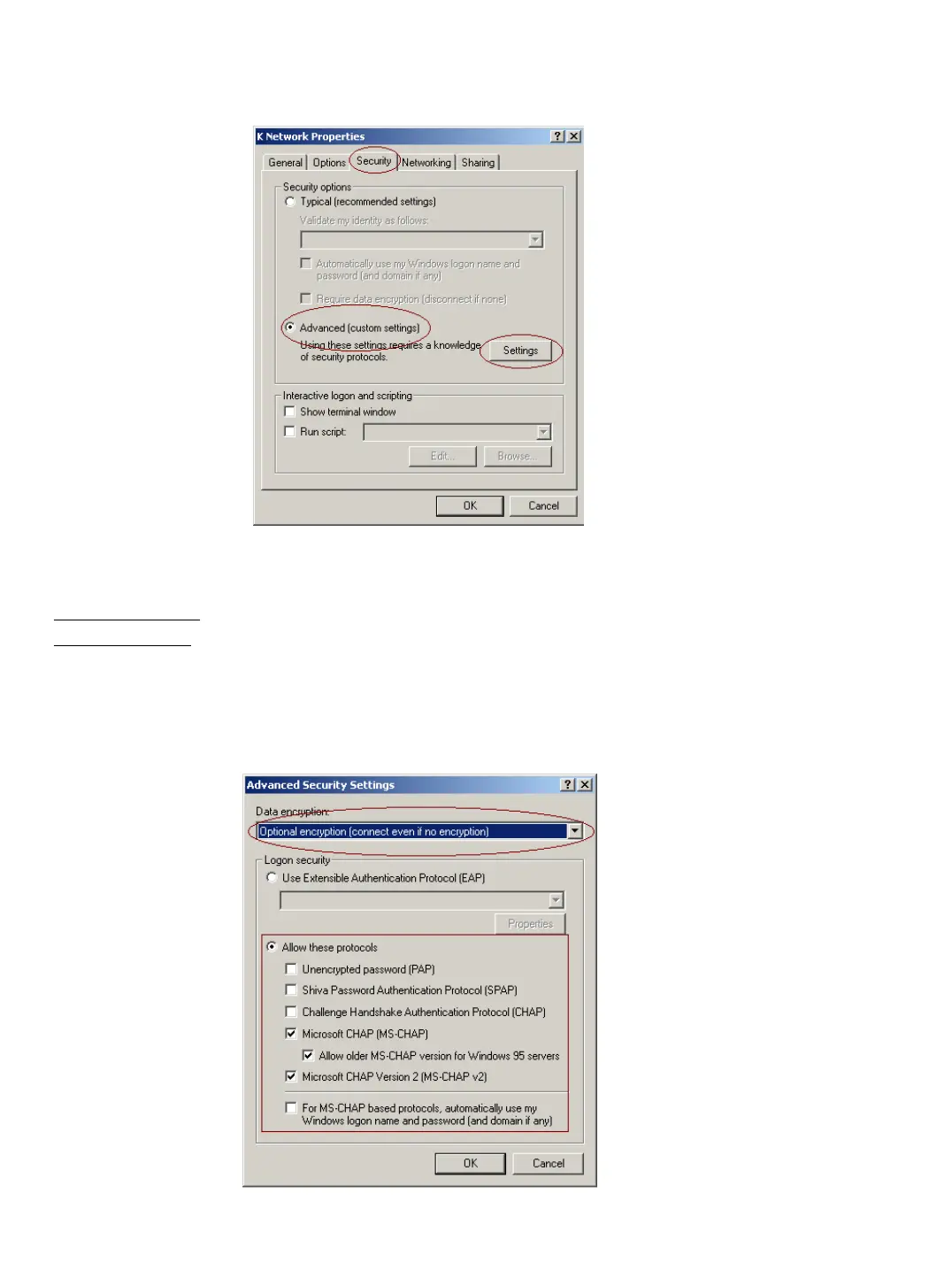 - Select “Security” on tab menu. Select “Advanced (custom settings) and Click on [Settings].