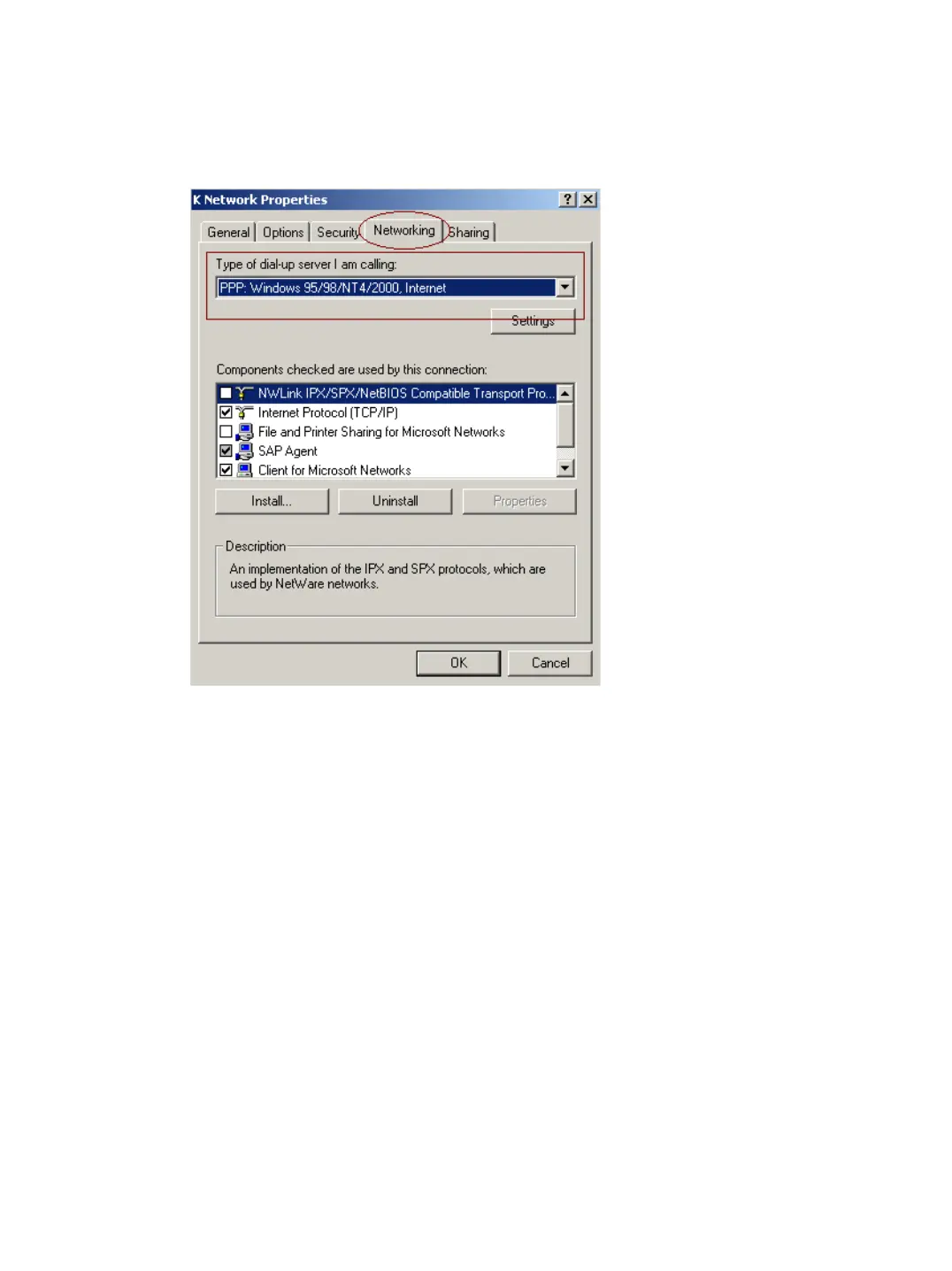 - In “Network” on tab menu, select “PPP: Windows 95/98/NT4/2000, Internet”. Then click on ok.