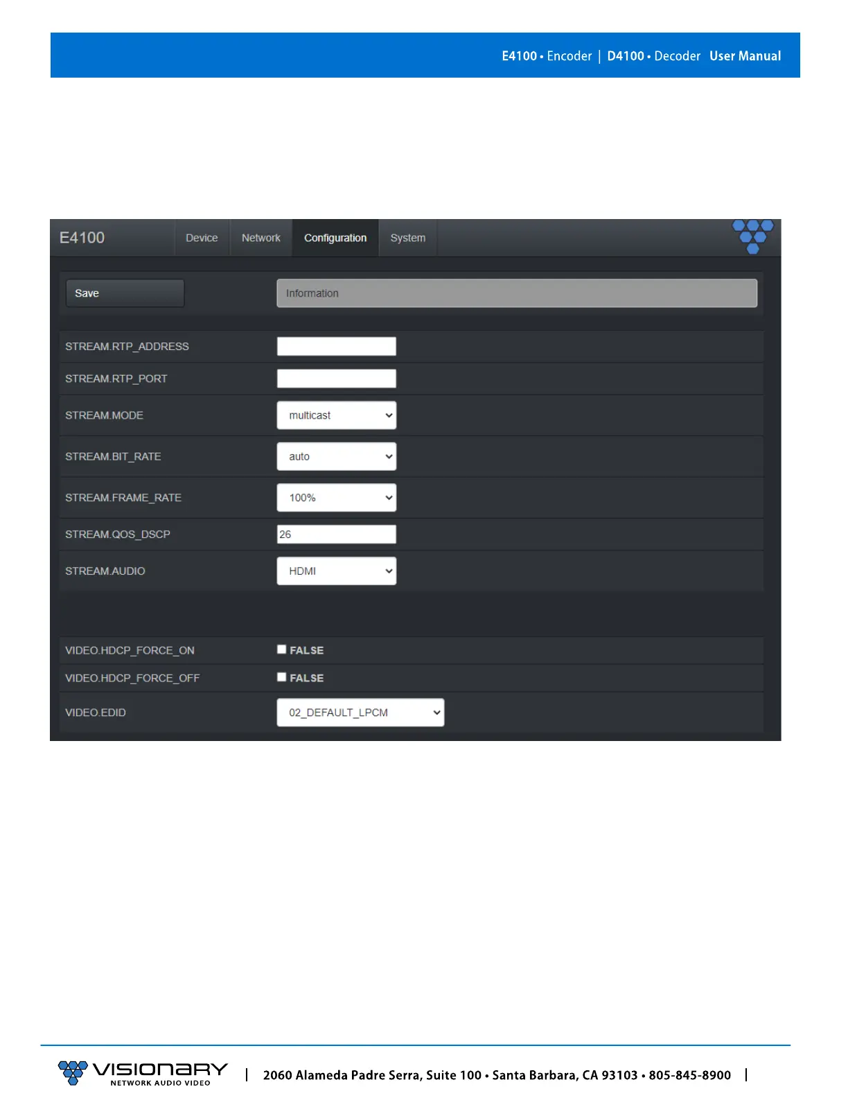 STREAM.MODE – Unicast or multicast. See section Configuring Stream Settings (Manually