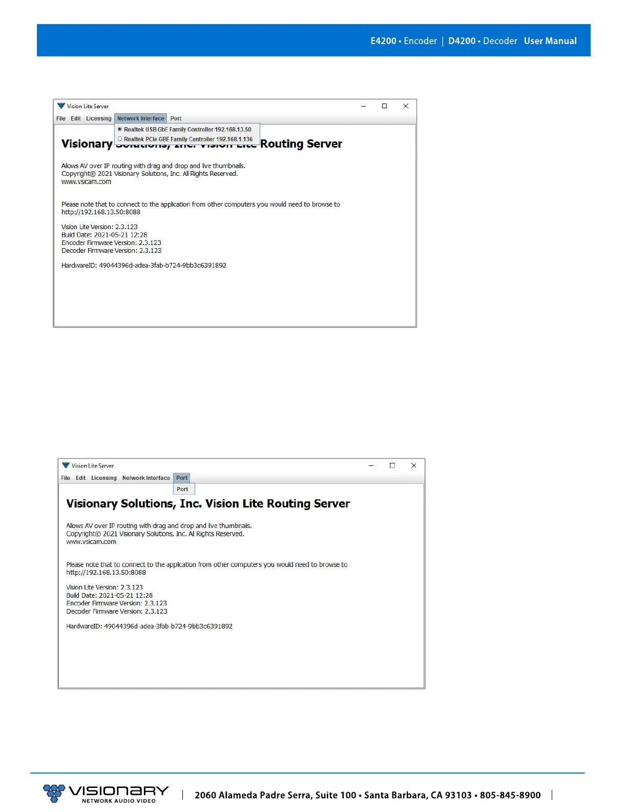 Select the network interface that the Vision Lite Server will be “listening” on. If your machine has more than one network