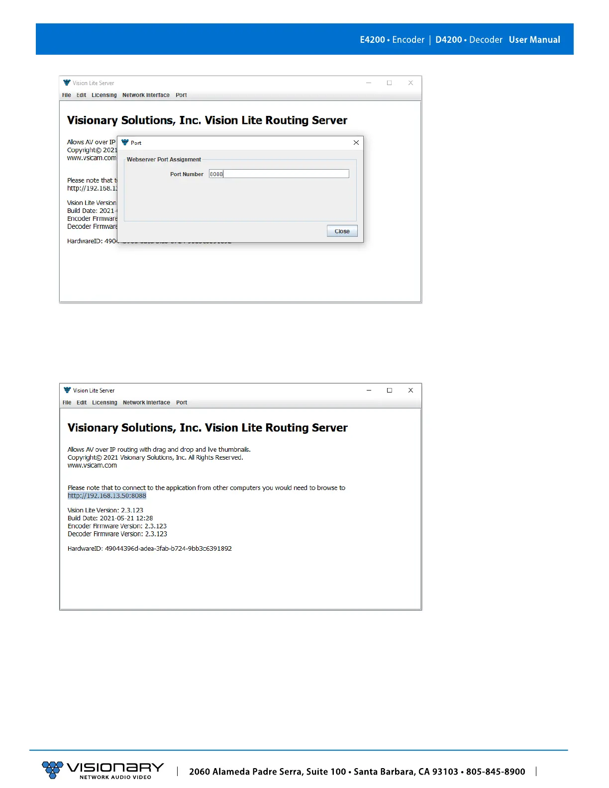 Important: The Vision Lite Server window needs to be closed and then reopened for the new port number to be assigned.