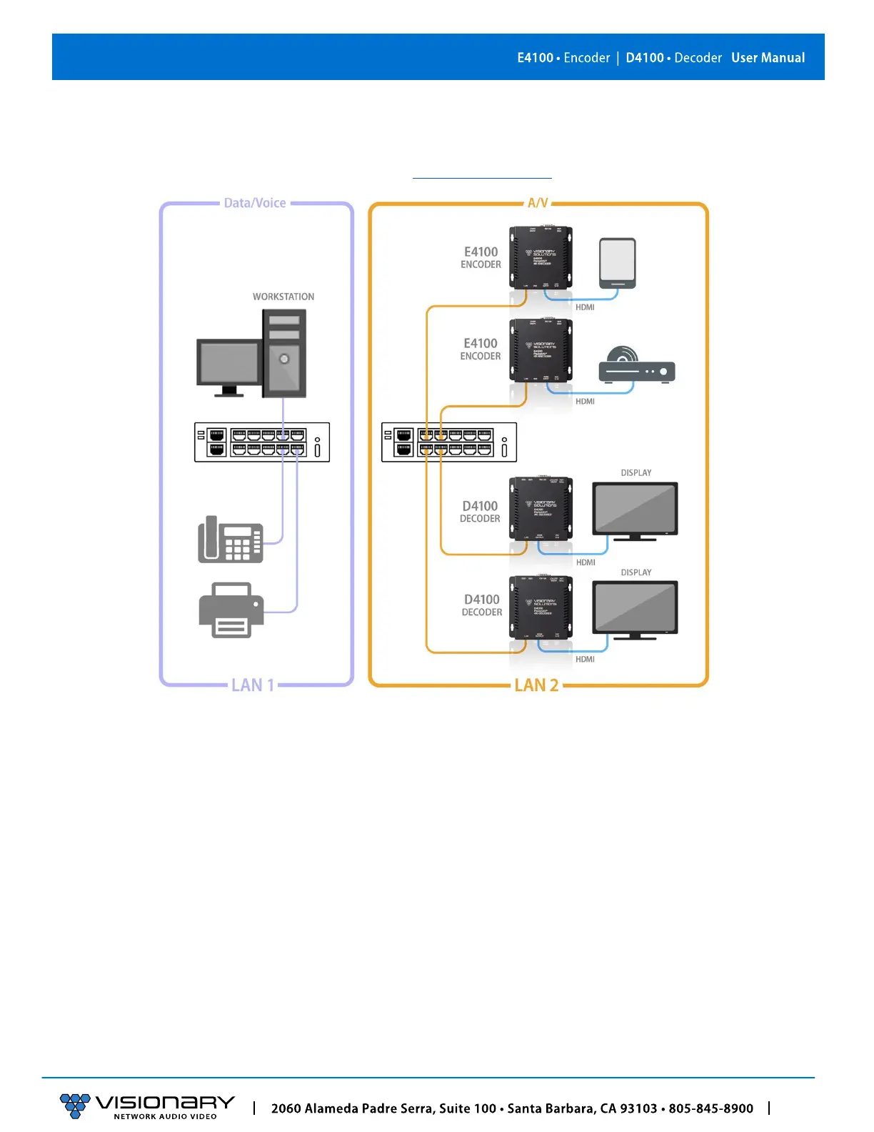 Figure 2 illustrates how E/D4100 endpoints can be installed on a dedicated network. A dedicated network is recommended for