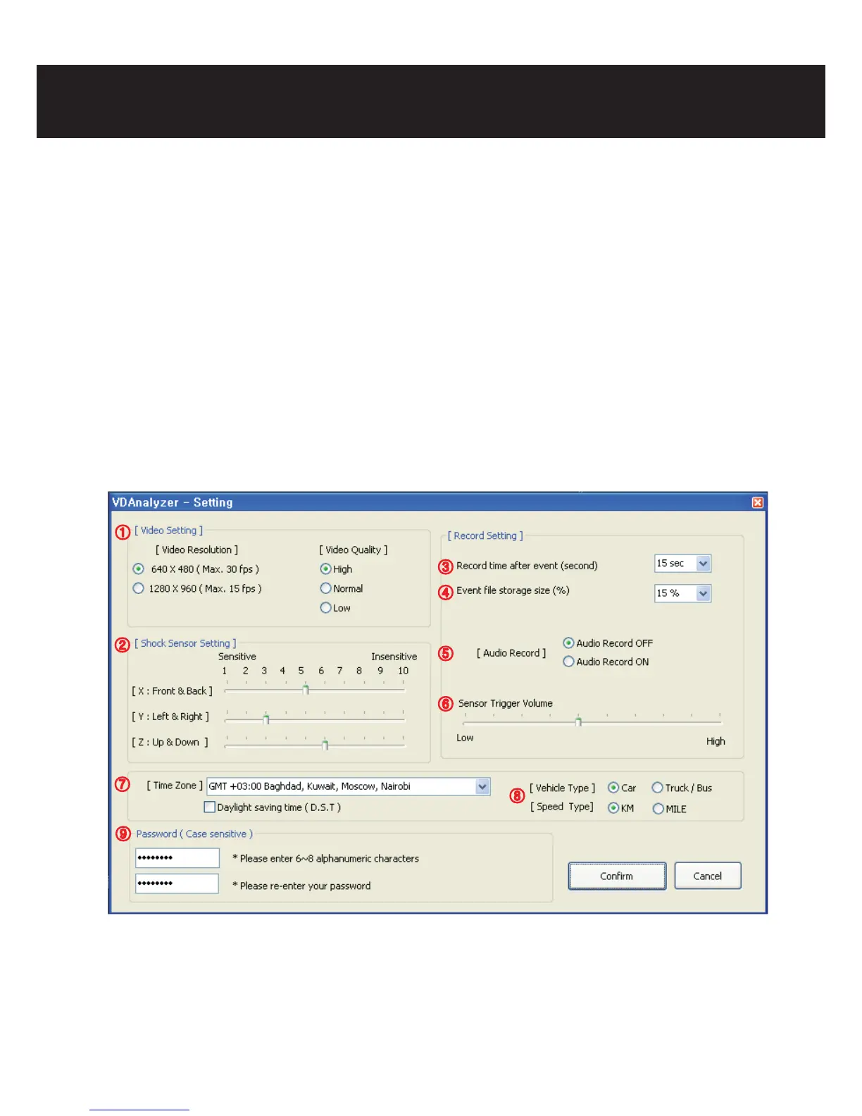 ⑨ Set the password. Repeated input for verication is required (6~8 of numbers and