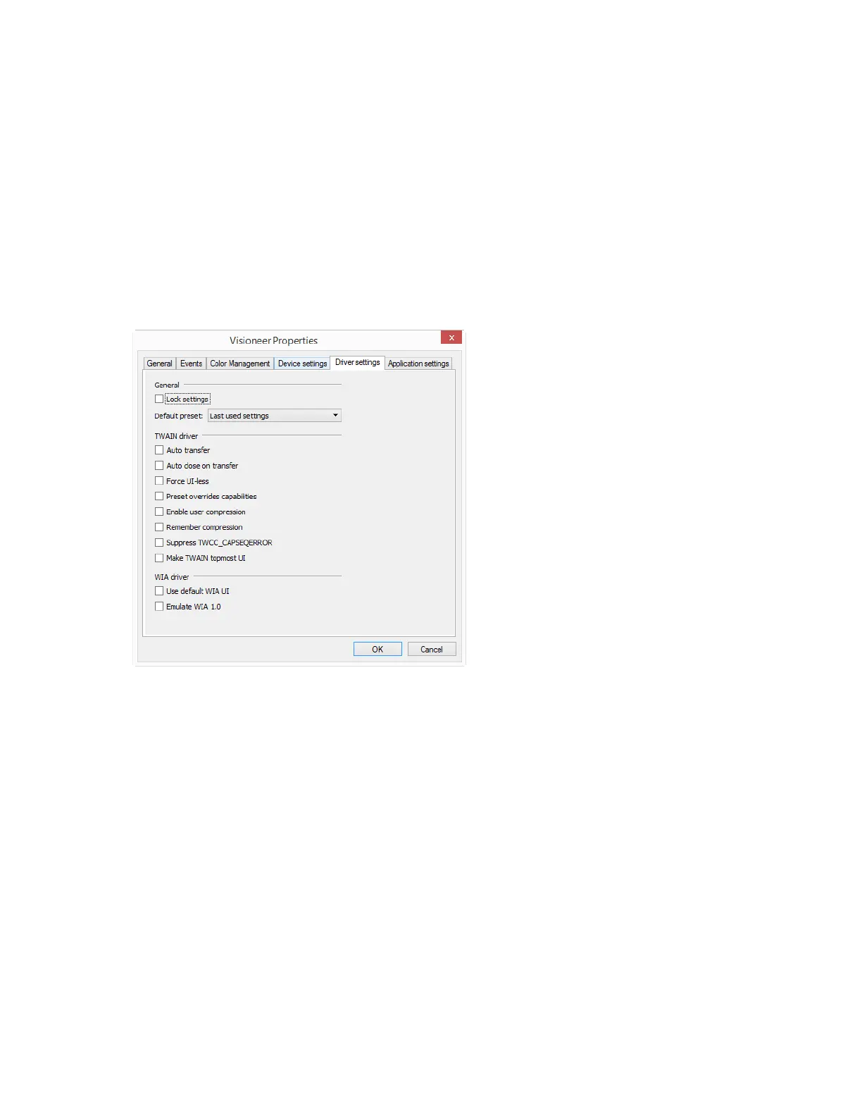The options in this panel are for configuring how the TWAIN interface will behave in some scenarios.