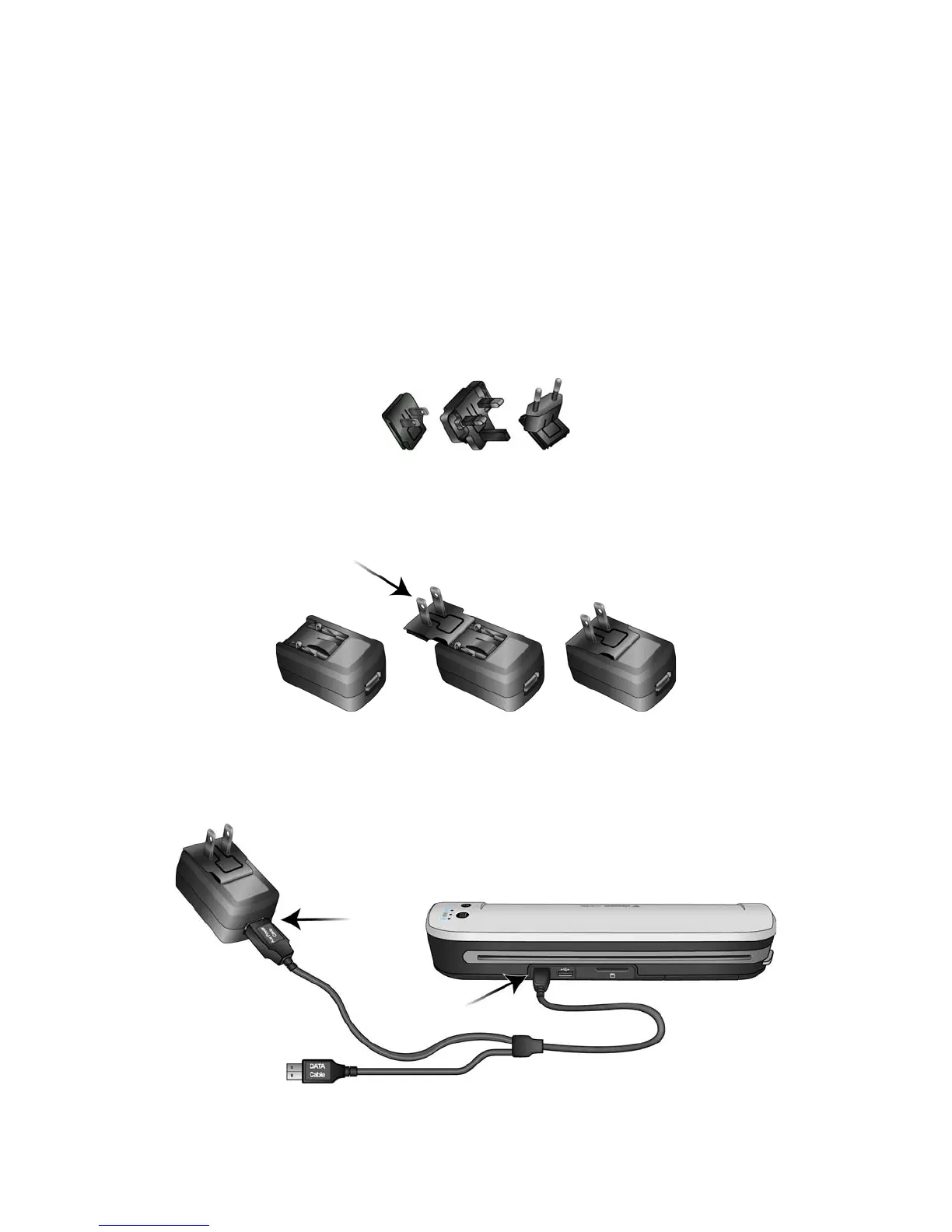 • Allow the battery to charge for at least 8 hours before using the scanner the first time.