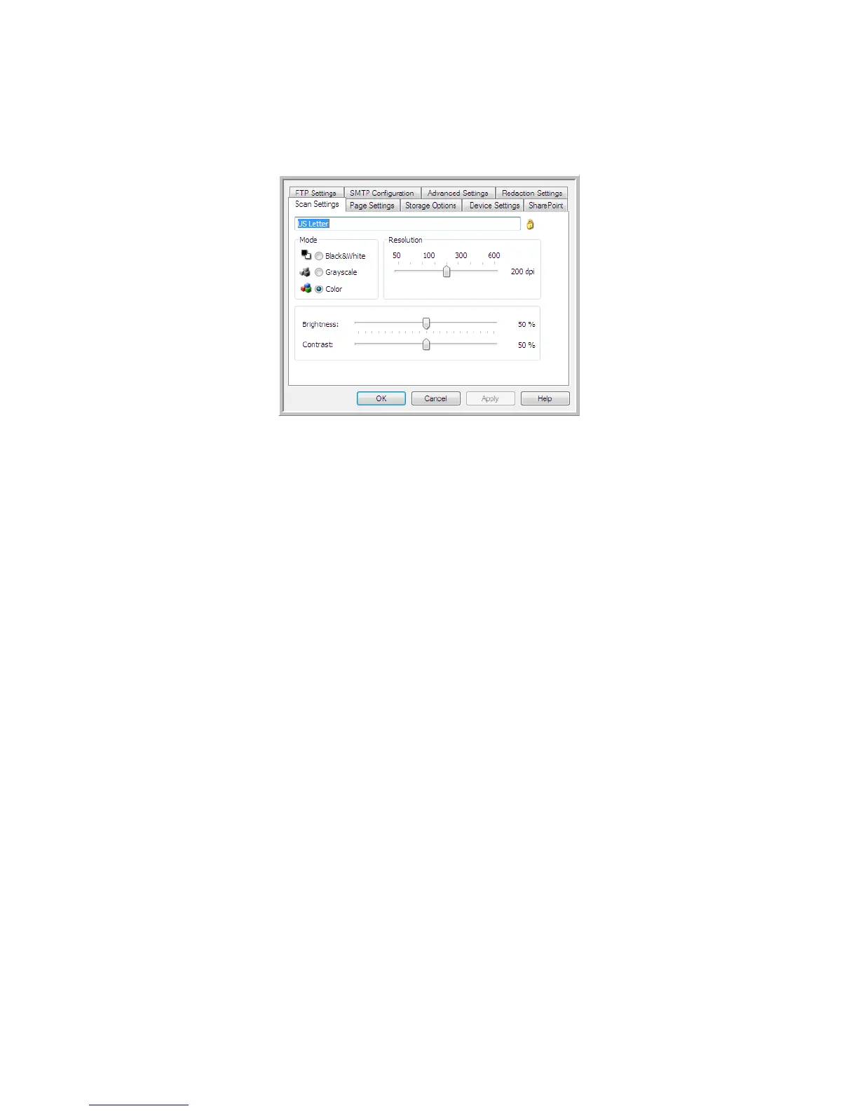 Each destination that has per-scan configuration properties will be represented by its configuration tab in