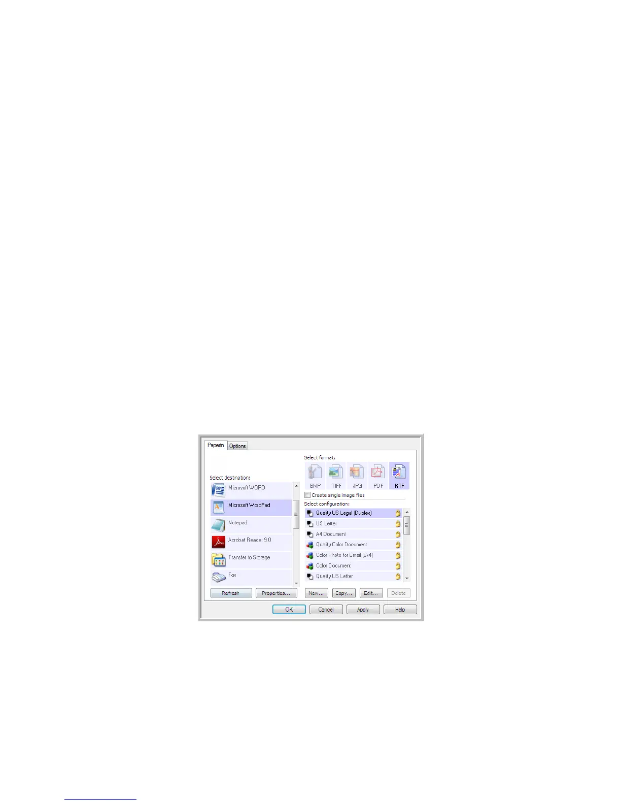 a file format such as TEXT or RTF.