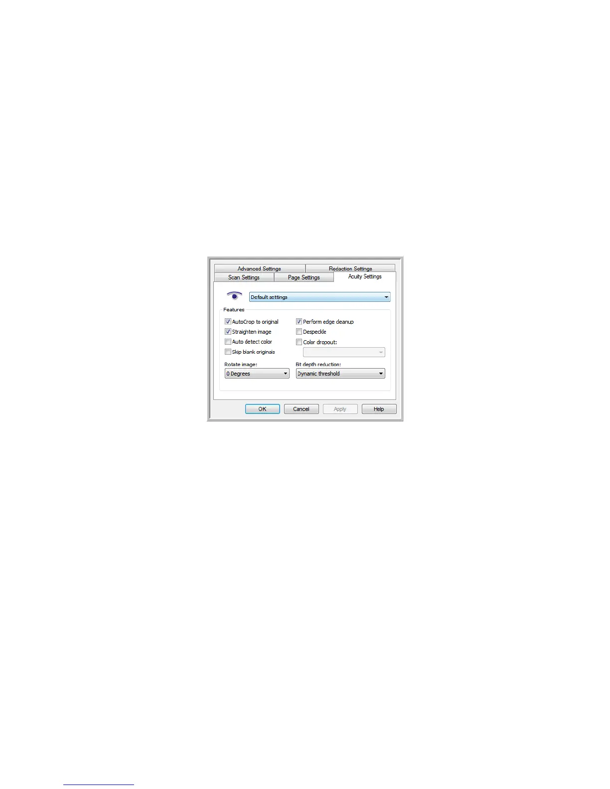 This section explains how to use the Visioneer Acuity features when choosing new scan settings for your scanner.