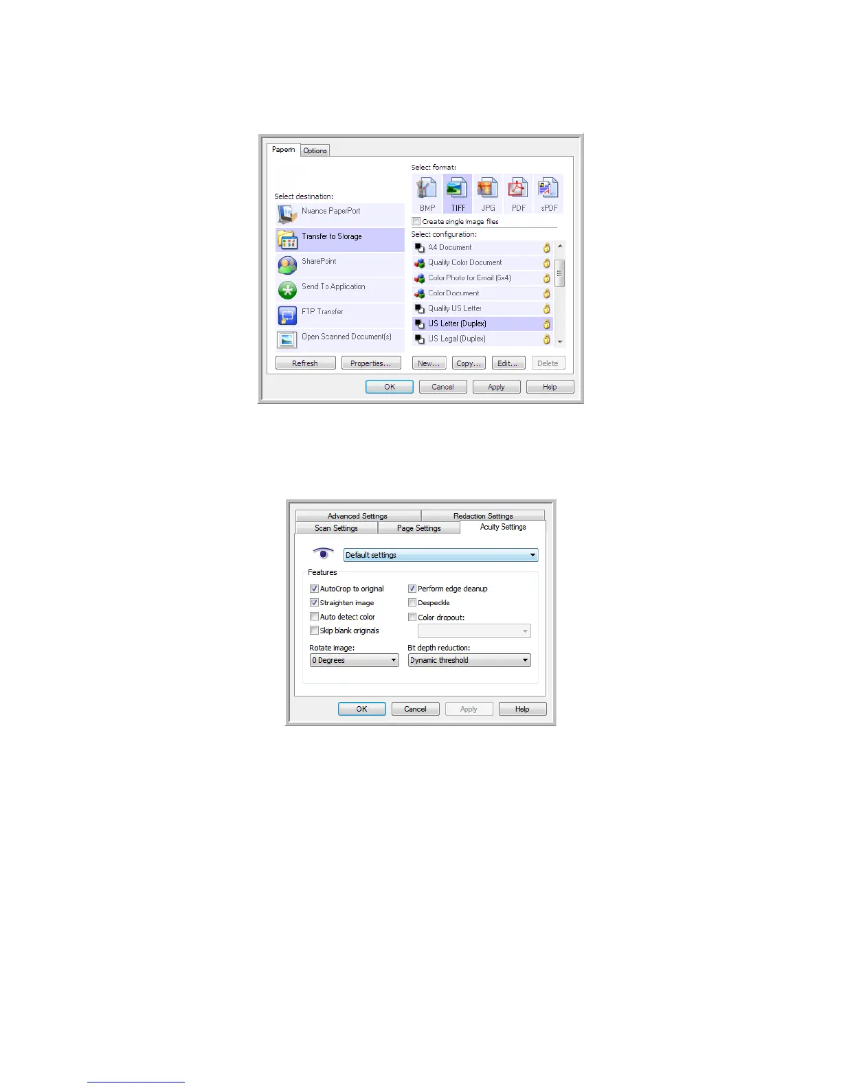 4. Choose the Visioneer Acuity options for the scan configuration.
