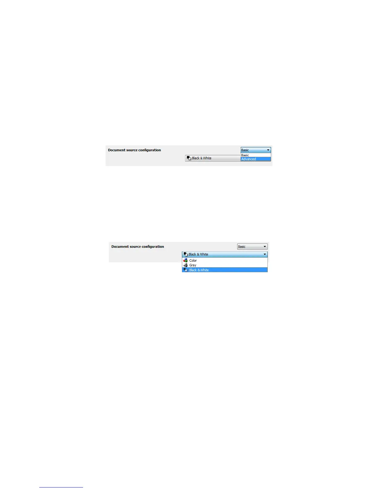 Select Basic or Advanced from the list to show the basic or advanced document source configuration options as