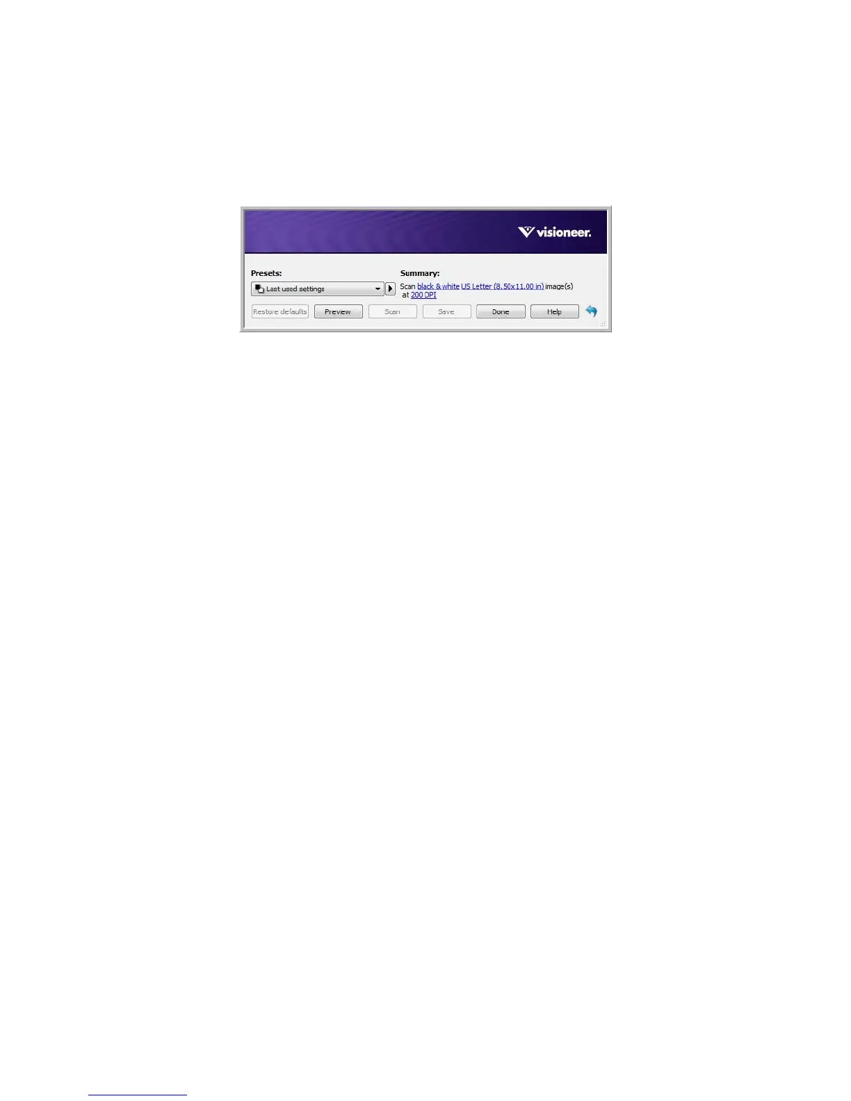 will match the application settings that were used to scan. Select this option to have the settings reset to the
