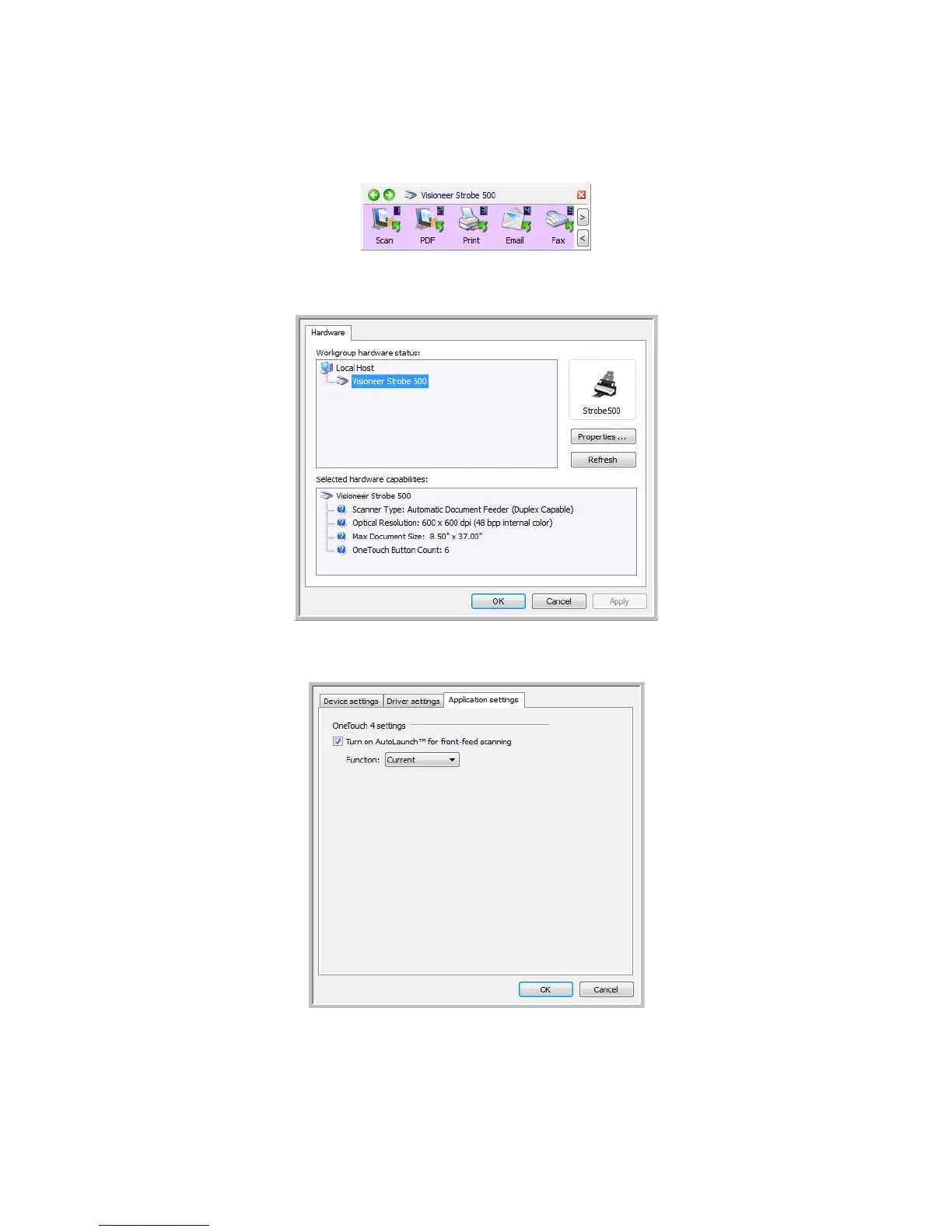 2. Click on the scanner icon to the right of the green buttons, in the title bar of the OneTouch button panel.