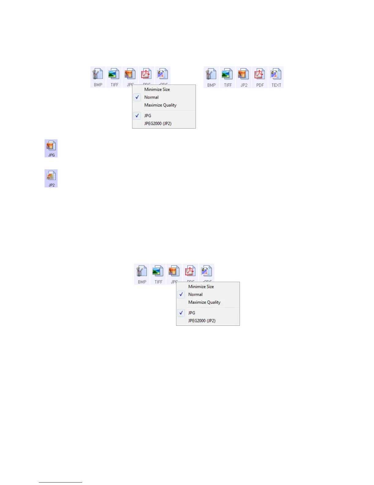 Right-click on the JPG icon to access the JP2 image format. When you select JP2, the format panel will change the