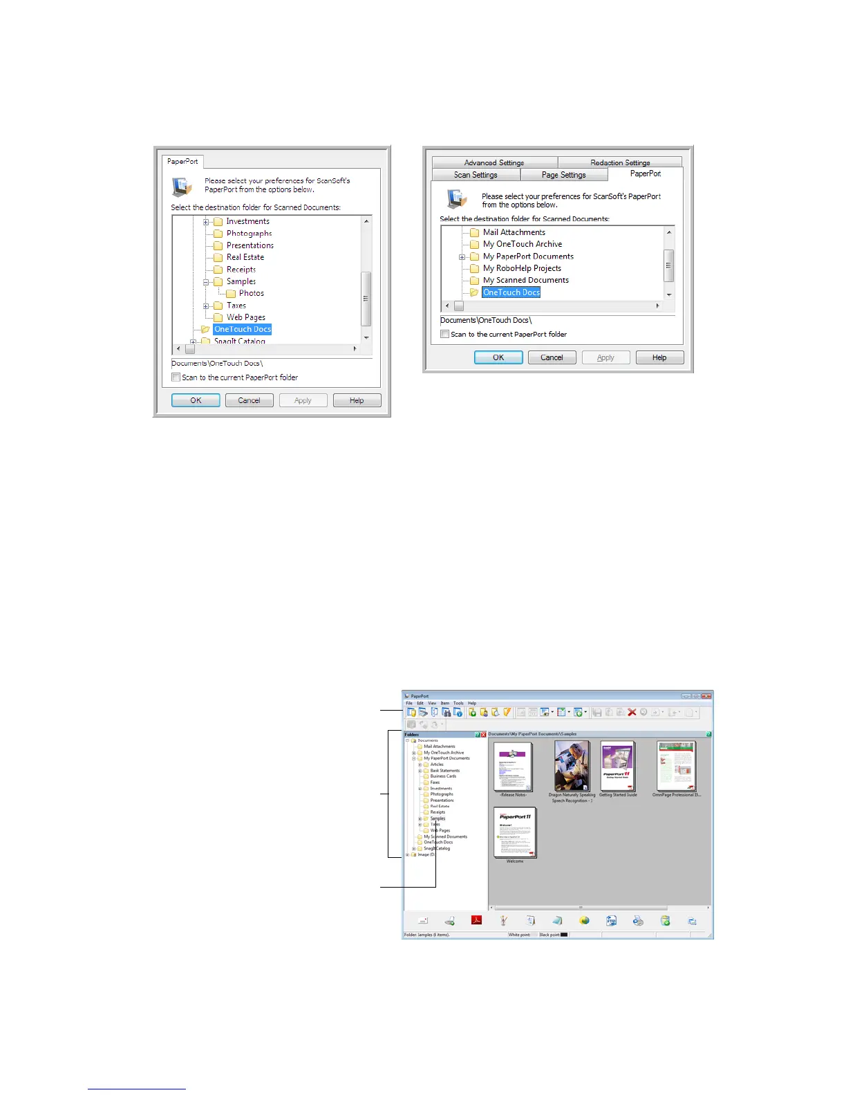 • Select a folder to send the scanned document(s) to when scanning to the PaperPort destination.