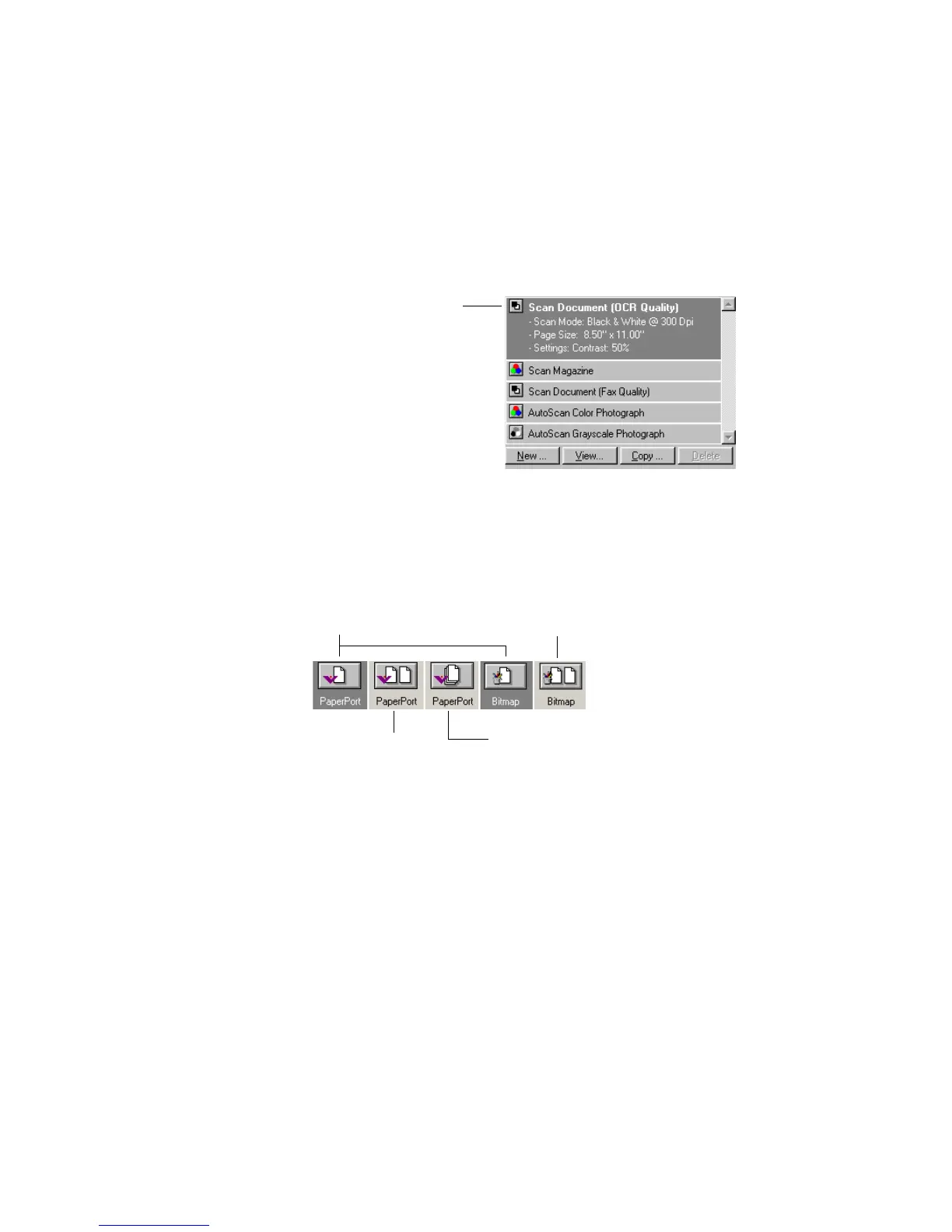 The format options are bitmap and PaperPort. Use the PaperPort