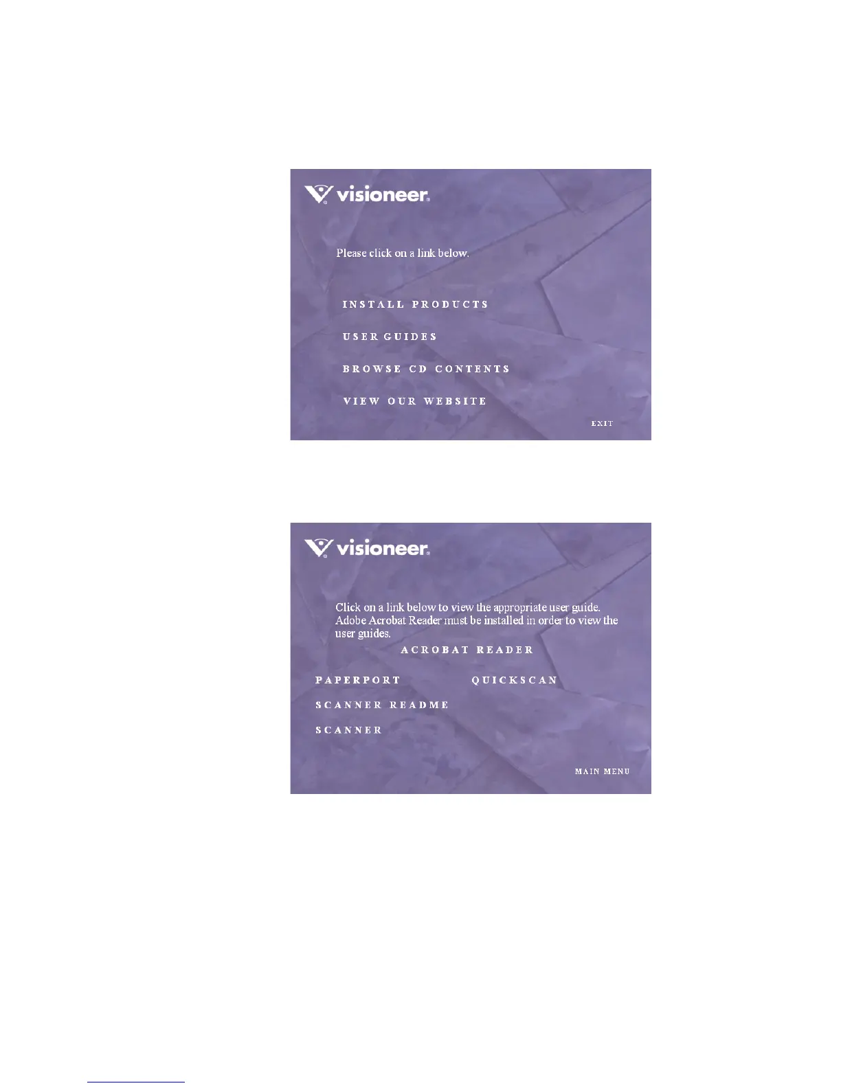 The Visioneer User Guides window opens. Use this window to view
